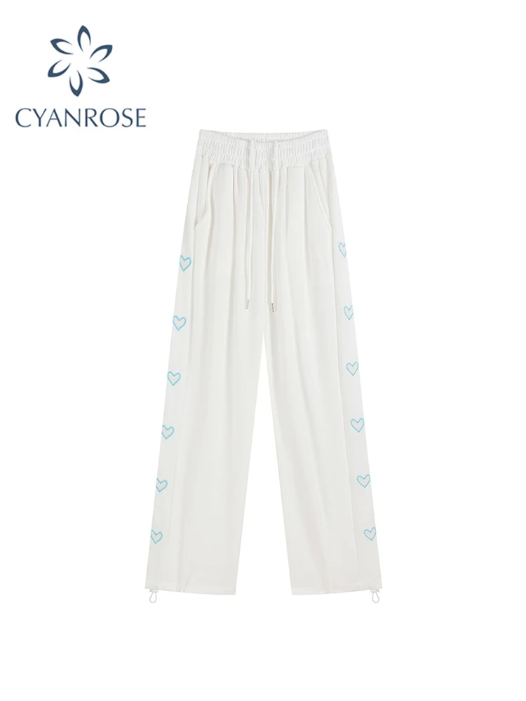 Спортивные брюки для женщин, мешковатые модные спортивные брюки оверсайз с принтом сердца, женские джоггеры, уличная одежда, новинка сезона осень-зима 2021