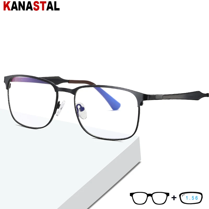 Мужской анти-синий светильник, блокирующие очки, квадратные TR90, металлические оправы для очков, компьютерные очки по рецепту, очки для чтения с близорукостью и дальнозоркостью