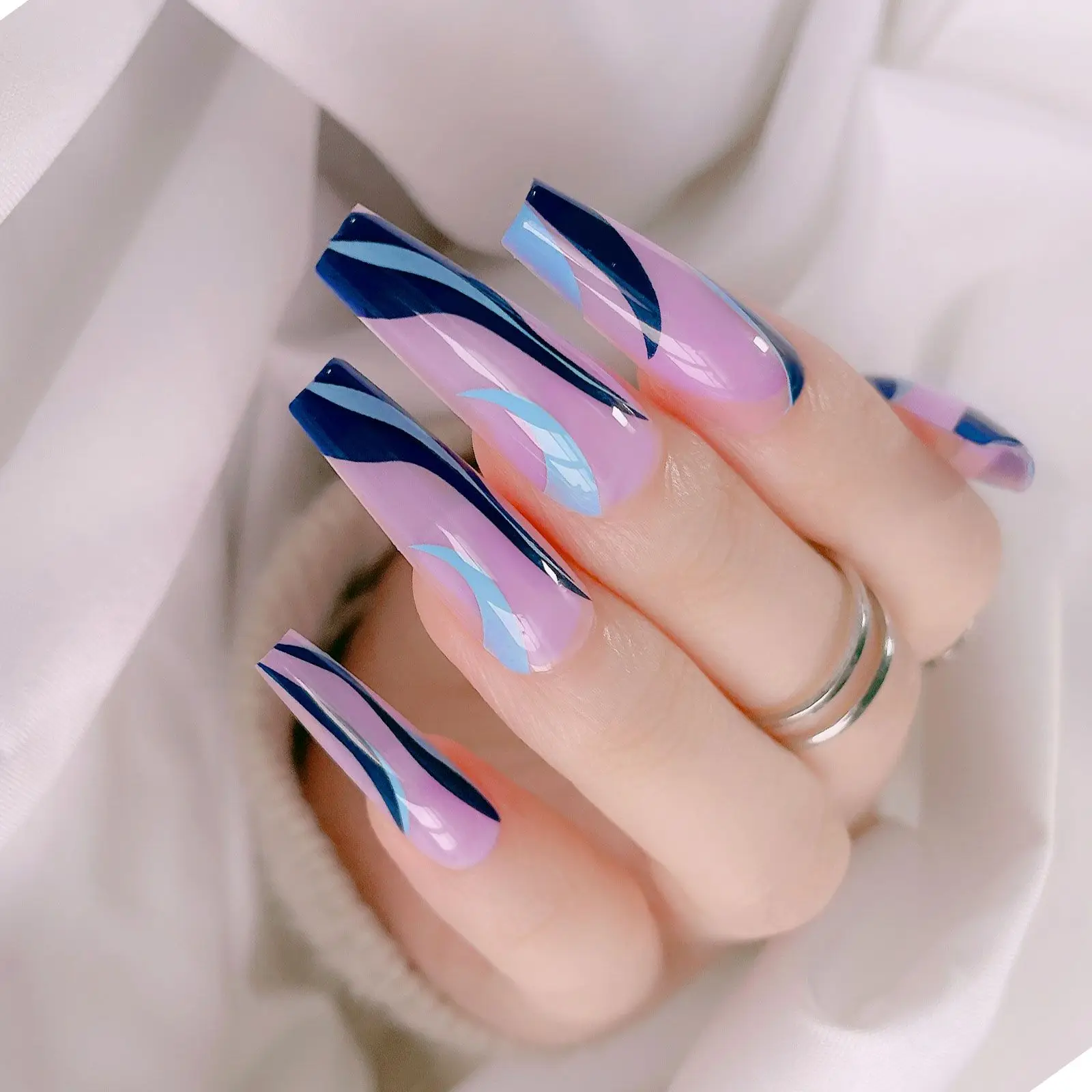 24 шт. сверхдлинные синие волнистые накладные ногти съемный гроб фр...