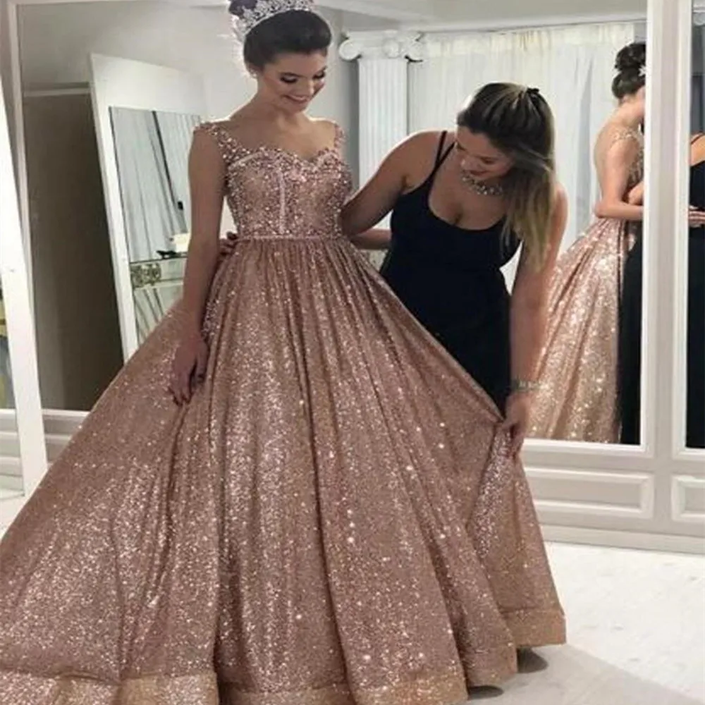 Блестящие розово-золотые платья для выпускного вечера, бальное платье принцессы, милое бальное платье, 16 платьев, 15 лет