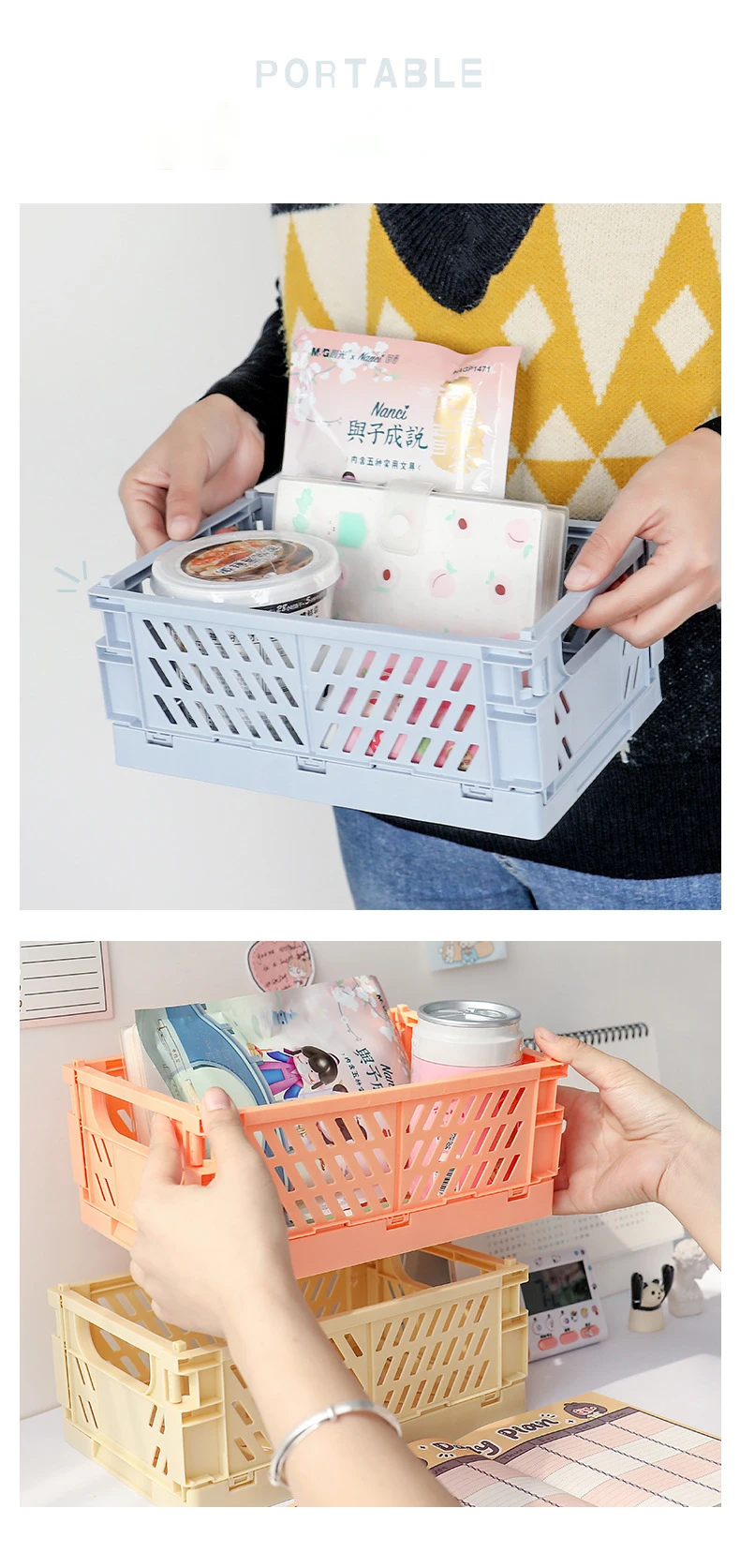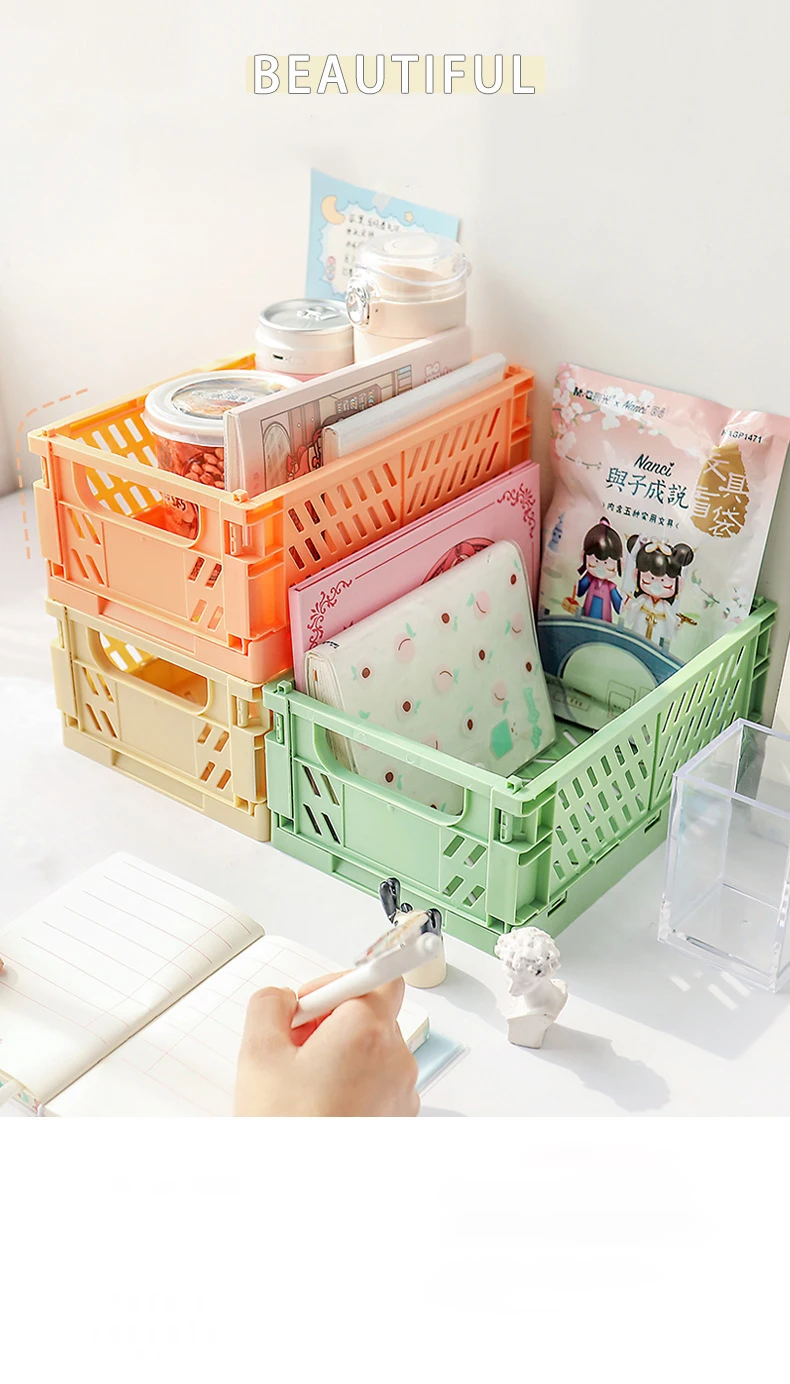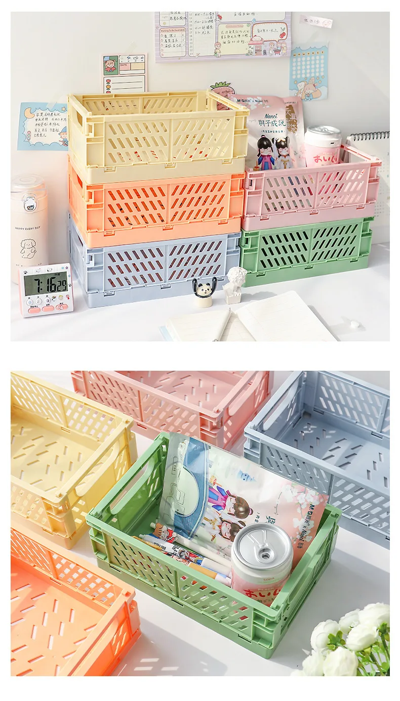 Мини Штабелируемый Декор складной пластиковый ящик для хранения складной ящик корзины лоток с ручками для полки продуктов кухни