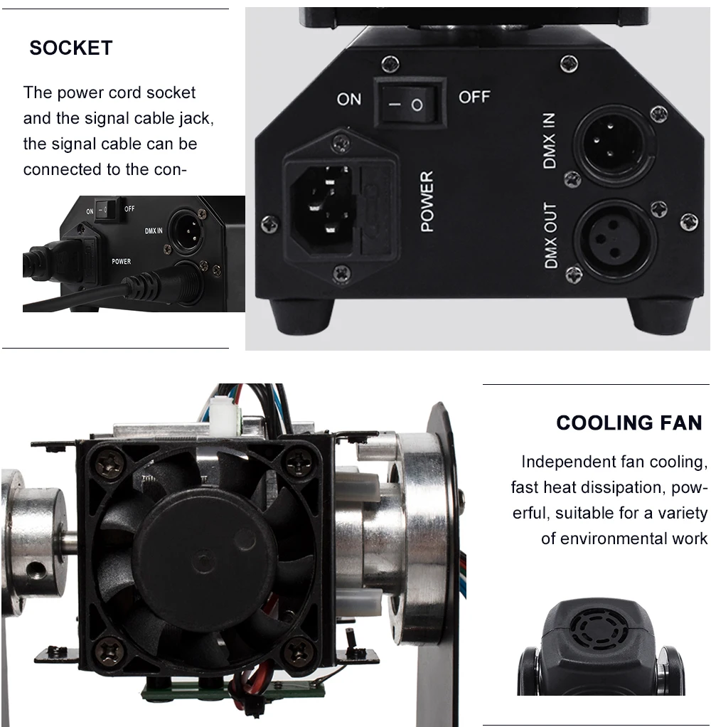 * Режимы управления:DMX512, Авто запуск, звуковое действие, стробоскоп, автономный и мастер/раб, с богатой передовой встроенной программой