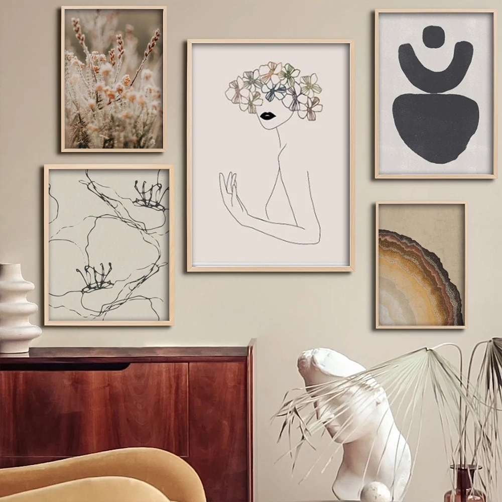 Абстрактная линия, рисунок с печатью, искусство на стену для женщин...