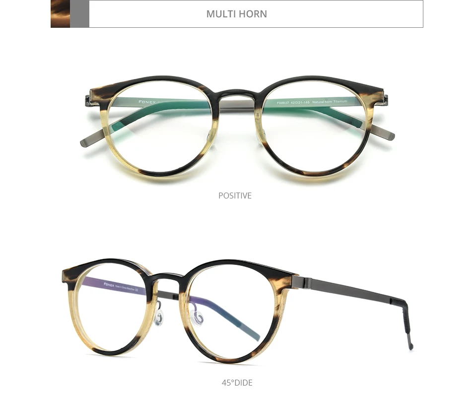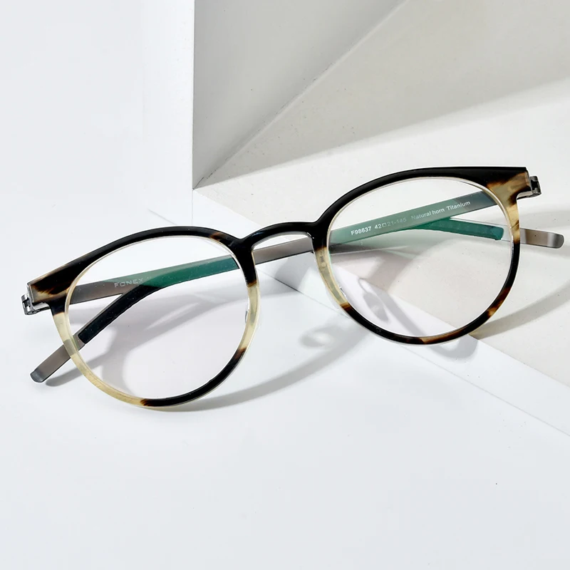 FONEX Титановая оправа для очков с рогом буйвола для мужчин и женщин, винтажные круглые Рецептурные очки в стиле ретро, 2022, F98637