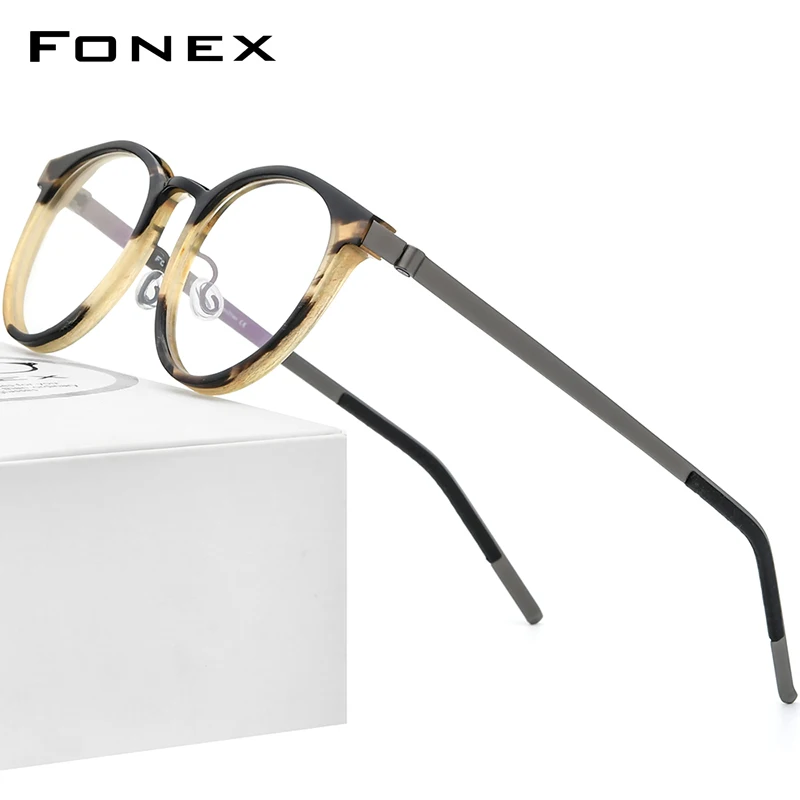 FONEX Мужская и женская круглая оправа, ацетатная титановая оправа ...