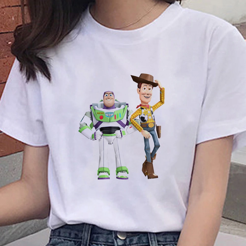 Футболка с изображением Вуди и Базза Фэйри Диснея, универсальная Изысканная креативная футболка с круглым вырезом и коротким рукавом, Лидер продаж