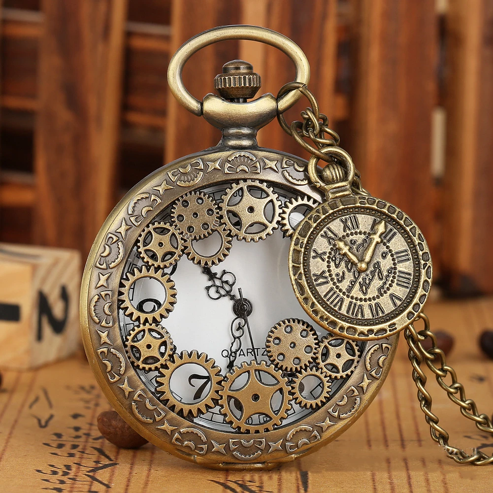 Винтажный старинный медный Бронзовый полый механизм, кварцевые карманные часы в стиле стимпанк, ожерелье, подвеска, цепочка для часов, мужские и женские часы, подарок