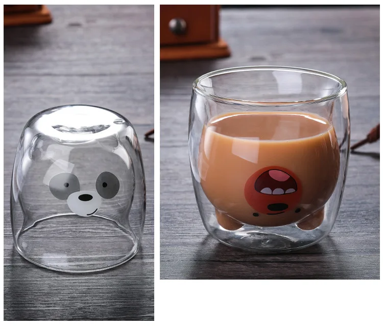 201-300 мл стеклянная кружка с двойными стенками креативные кружки с милым медведем, кофейные кружки, кружка для чая с молочным соком, чашка для Дня Святого Валентина, подарок на Рождество для детей