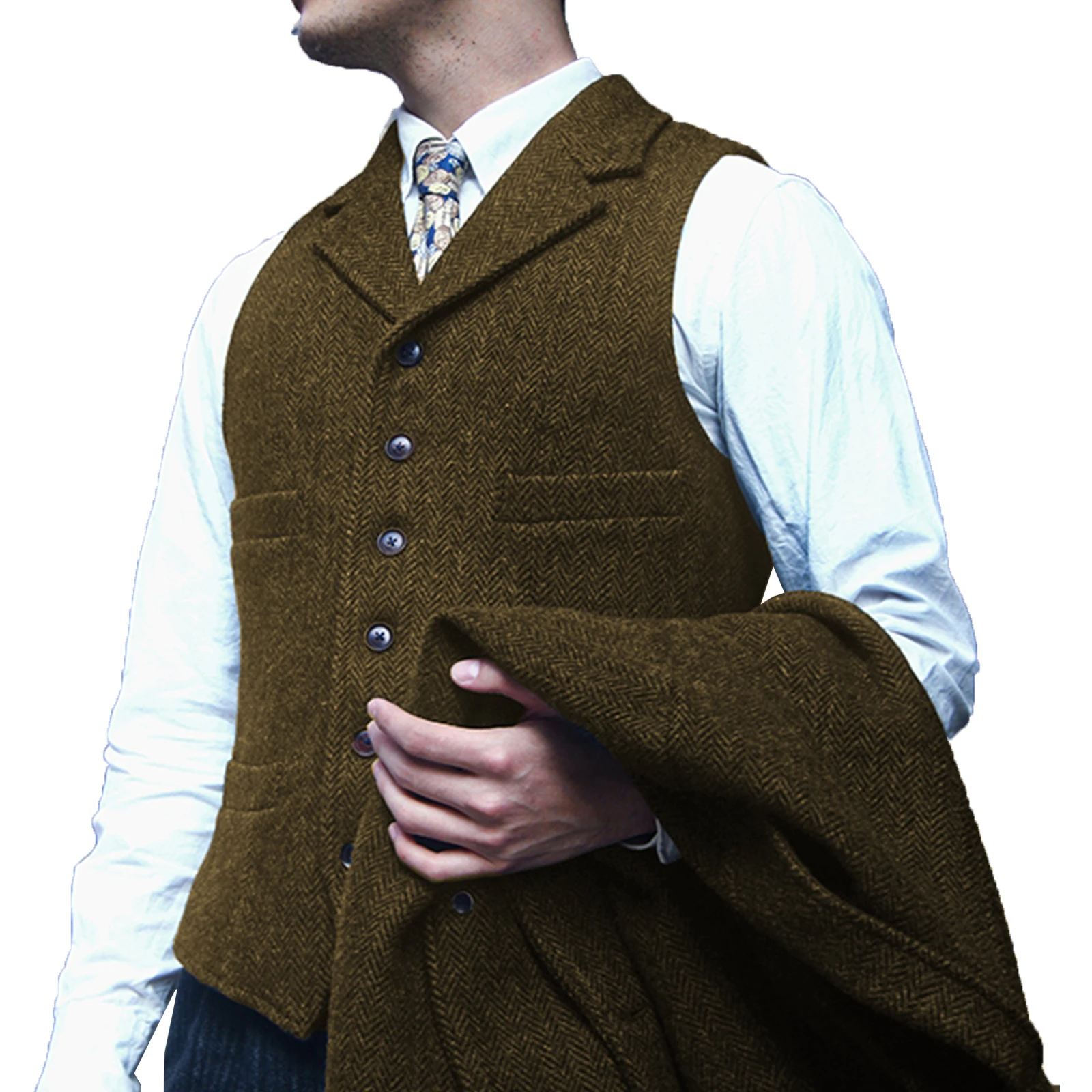 Мужской твидовый приталенный костюм в елочку, хлопковый жилет Королевского синего цвета, деловой коричневый жилет для жениха на свадьбу