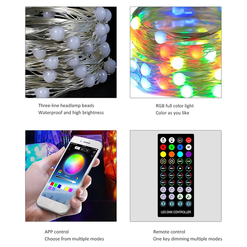 Светодиодная USB-гирлянда, уличная лампа с дистанционным управлением через приложение и Bluetooth, сказосветильник освещение для украшения рождественской елки