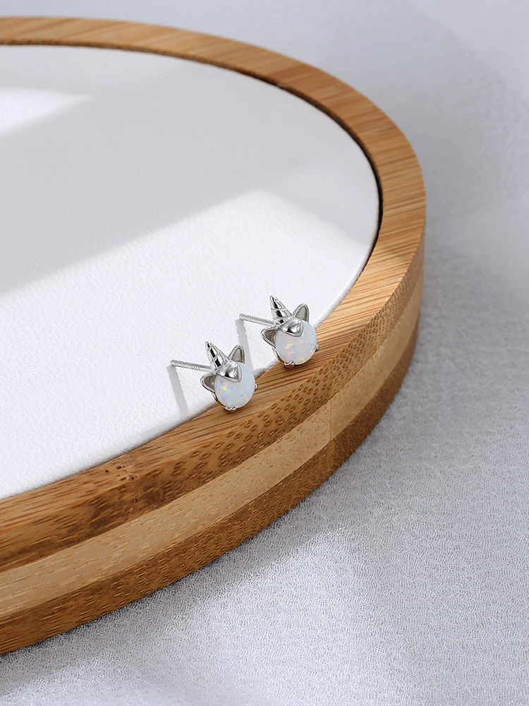 SILVERHOO серьги-гвоздики из стерлингового серебра 925 пробы с единорогом и опалом для женщин Свадебные маленькие серьги серебряные ювелирные изделия 2021 новые мод