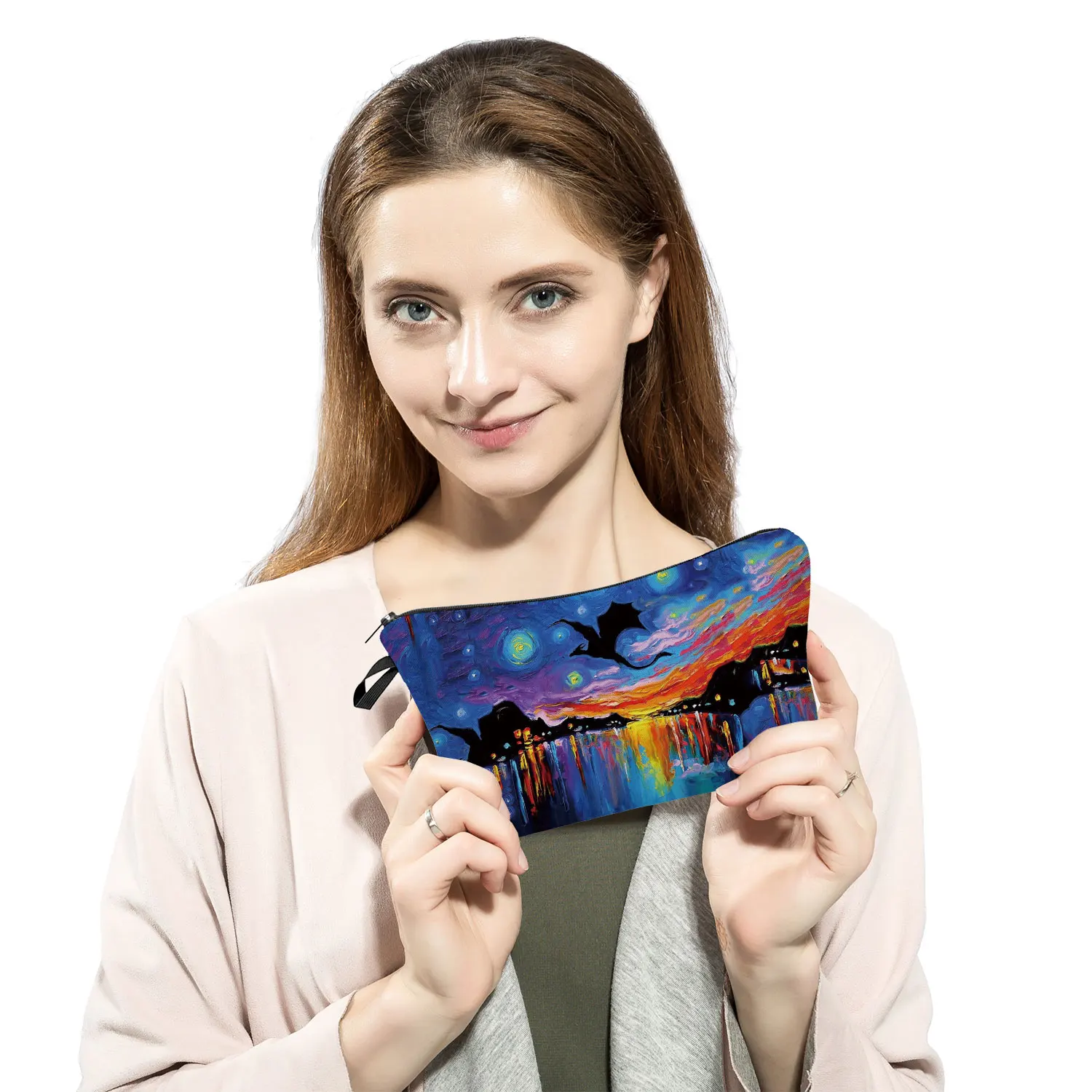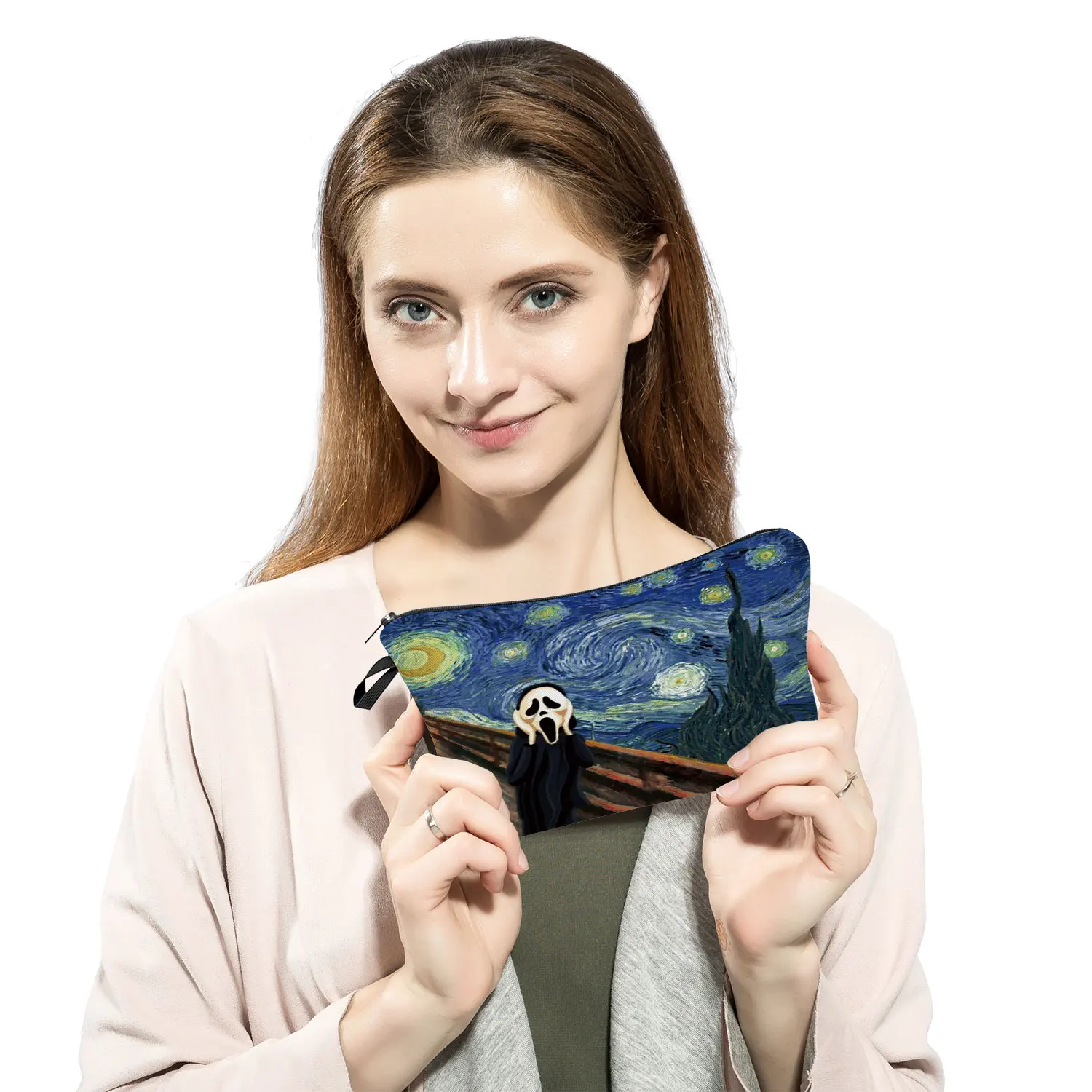 Сумка для макияжа с изображением собаки Ван Гога, звездная ночь, животное, картина маслом, органайзер, сумки, дорожные сумки, сумка для женщин, косметичка, пользовательский узор