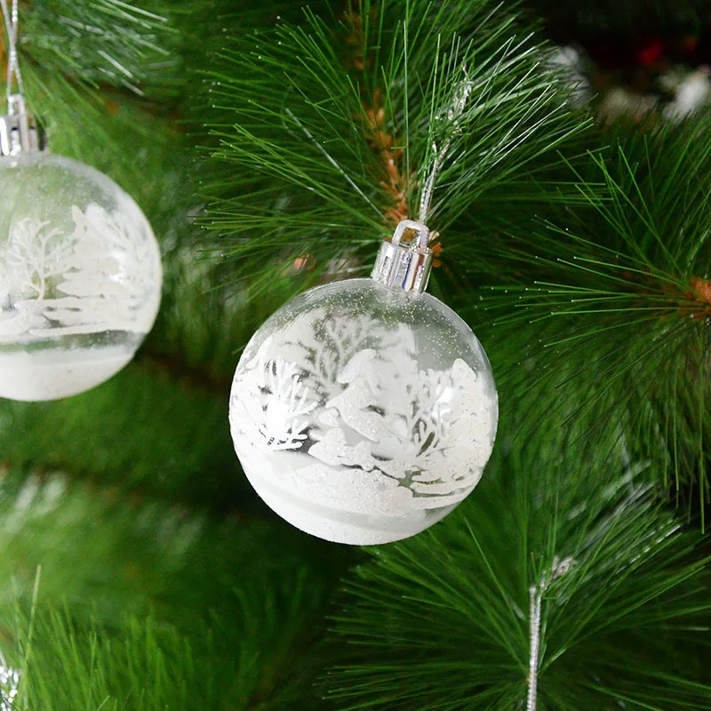 6 шт. 6 см изящная прозрачная белая пластиковая Рождественская елка, тематическая живопись, Рождественские шары, украшение для рождественской елки, подвесные украшения