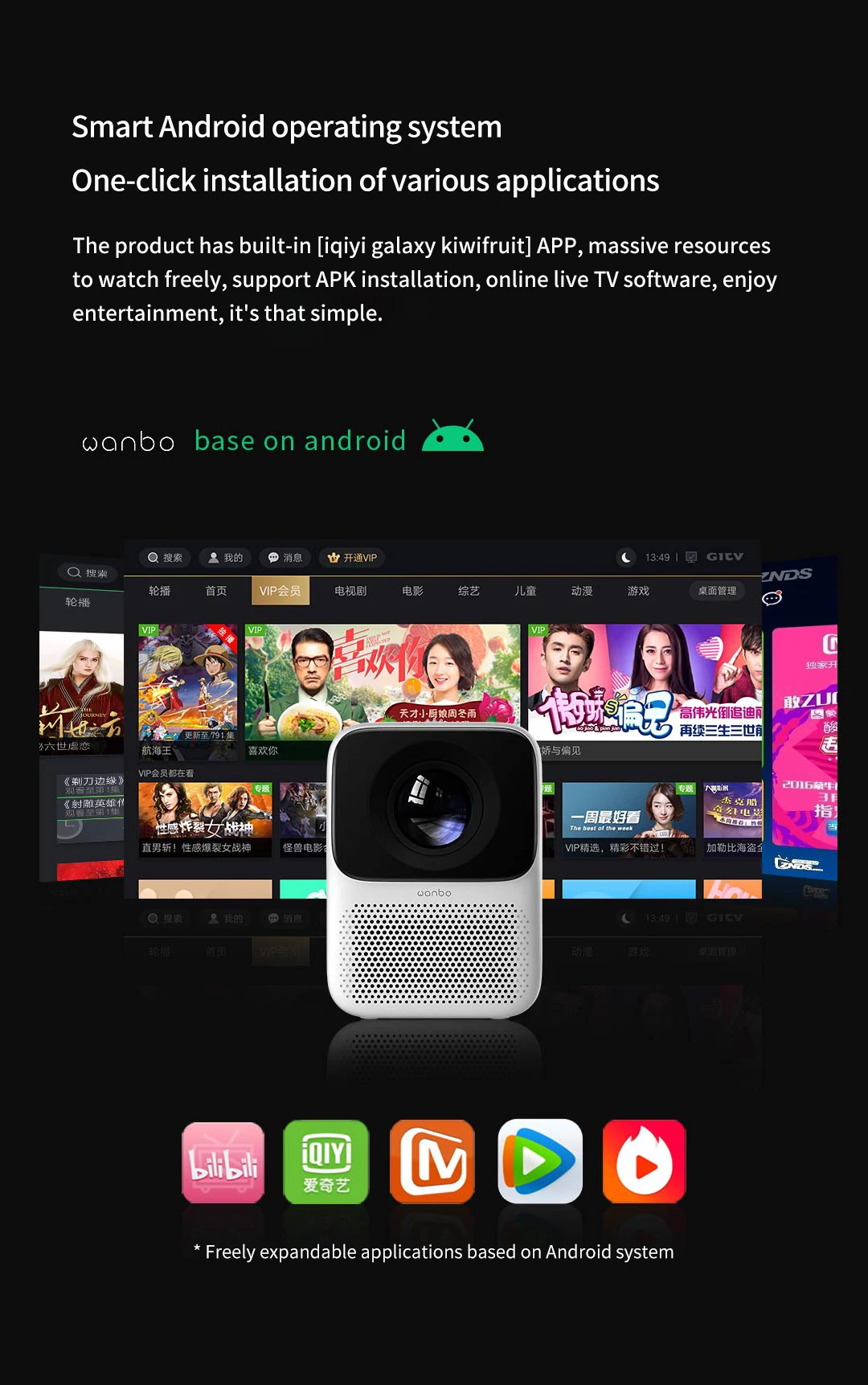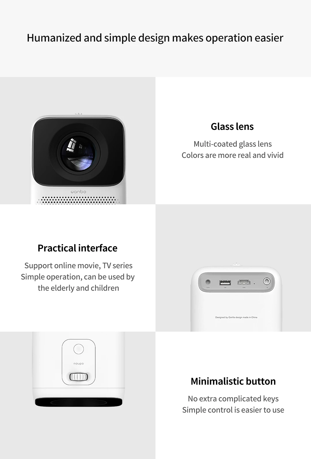 Портативный мини-проектор для домашнего кинотеатра Xiaomi глобальная версия Wanbo T2MAX1080LCD LED с вертикальной коррекцией трапецеидальных искажений