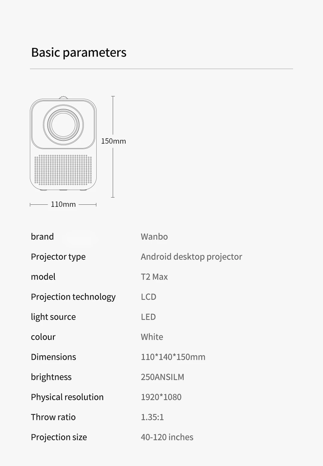 Новинка 2021, Wanbo T2 MAX, ЖК-проектор, светодиодный, поддержка 1080P, вертикальная коррекция keystone, портативный мини проектор для домашнего кинотеатра