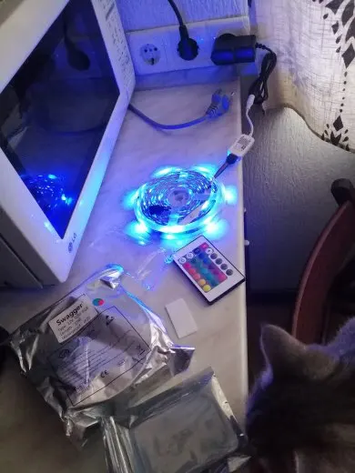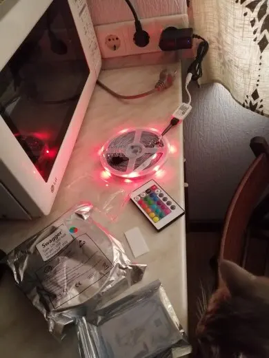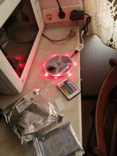 Хорошая лента работает, клейкая лента очень хорошо склеена в любом месте. С помощью приложения цвет изменяется легко вырезайте кусок, подключенный к плате, также все работает. Экспресс-Доставка осуществляется в течение 5 дней.
