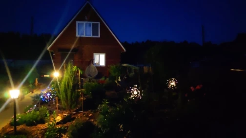 В фонарях по 50 скрученных проволок, на каждой 30 светодиодов. Итого 150. В темноте зажигаются сразу, но не горят постоянно, а мигают. Режимы мигания нигде не переключаются.