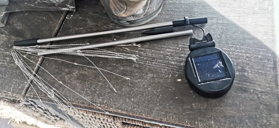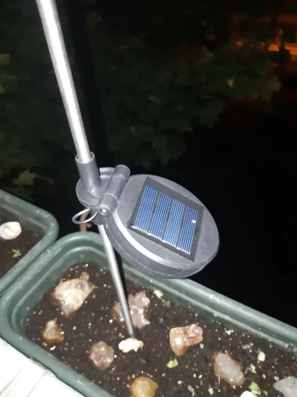Легко установить, пожалуйста, выберите солнечное место, прочно вставьте металлический столб в почву и зафиксируйте его. Есть кнопка в нижней части Круглого блок солнечной батареи, убедитесь, что вы включите переключатель перед зарядкой.