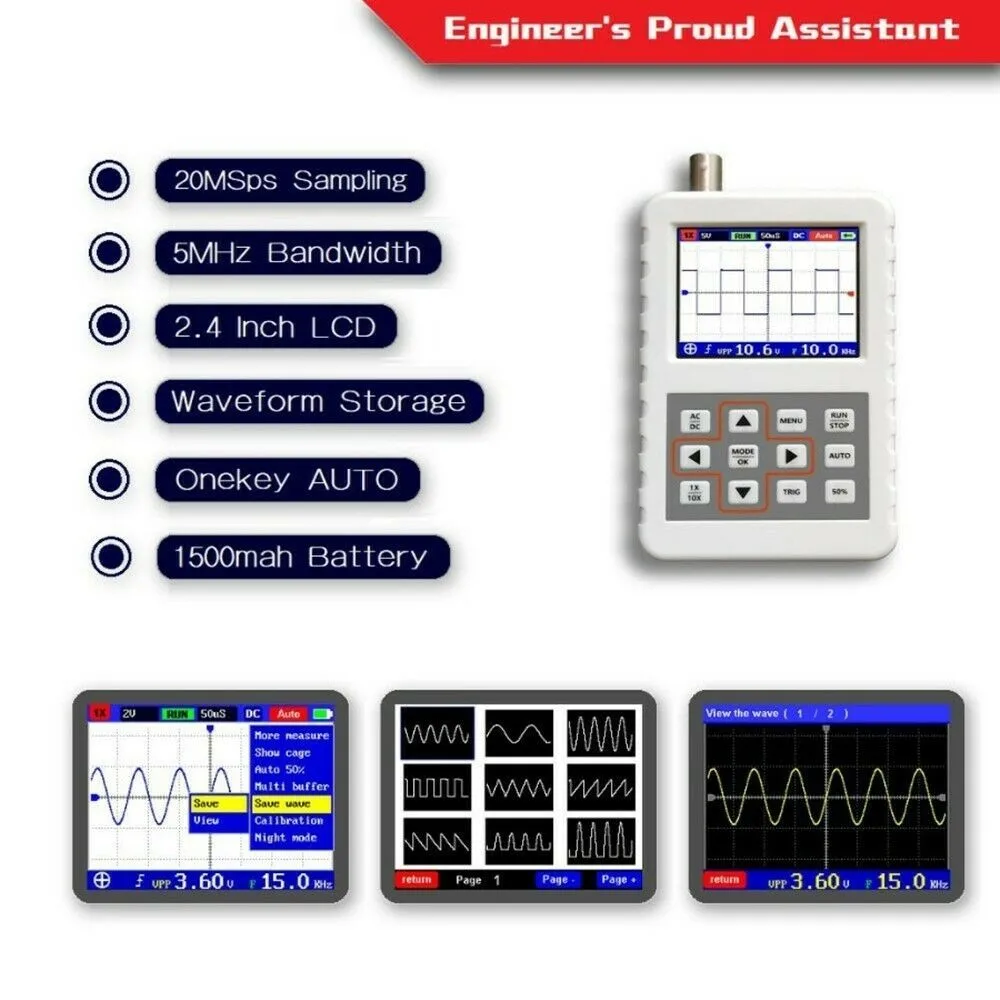 DSO FNIRSI PRO-это полнофункциональная, Высокоэффективная, высокопроизводительная и экономичная ручная осциллограф для отрасли технического обслуживания и НИОКР. Осциллограф имеет частоту дискретизации в реальном времени до 20 мс/с и аналоговую пропускную способность 5 МГц. С полной функцией запуска (одиночный, нормальный, автоматический), можно свободно использовать как аналоговый сигнал, так и аперитив цифрового сигнала. Режим сканирования с большой базой времени может контролировать медленные изменения уровня. Оснащен высокой эффективностью одной кнопкой авто, измеренная форма сигнала может отображаться без сложной регулировки. Дисплей в Высокое разрешение ЖК-дисплей экран оснащен 2,4 дюймов 320*240 разрешение. Чрезвычайно удобная и быстрая функция хранения сигналов, встроенная память объемом 16 Мб, Максимальная память 500 изображений формы волны. Мощный файловый менеджер waveform, поддержка просмотра эскизов, просмотра, просмотра деталей, переворачивания, удаления и других функций. Встроенный перезаряжаемый литиевый аккумулятор емкостью 1200 мАч может непрерывно заряжаться в течение 3 часов одновременно. Дневной режим и ночной режим могут быть изменены в соответствии с их собственными предпочтениями.