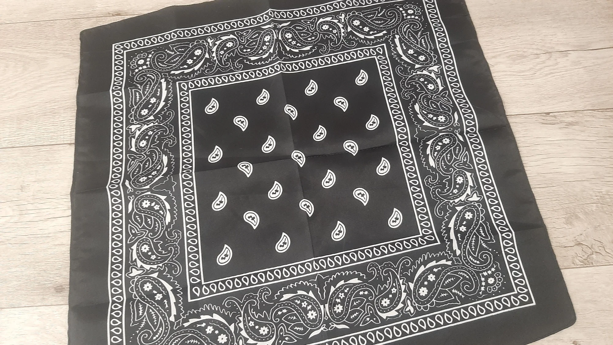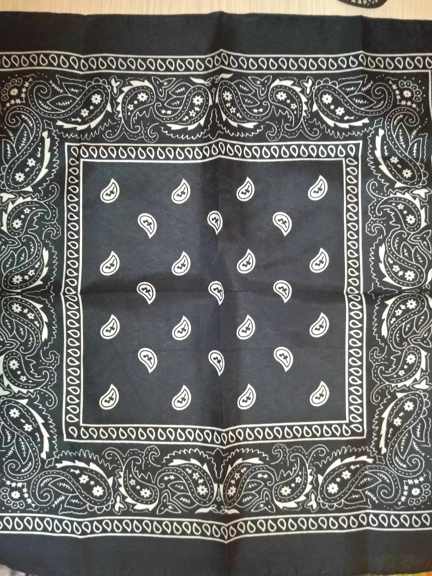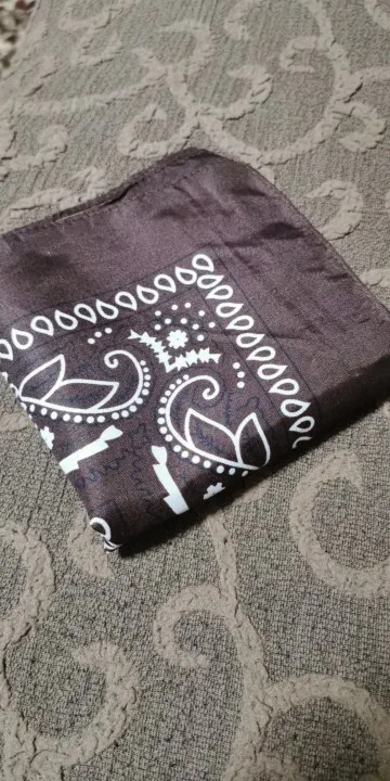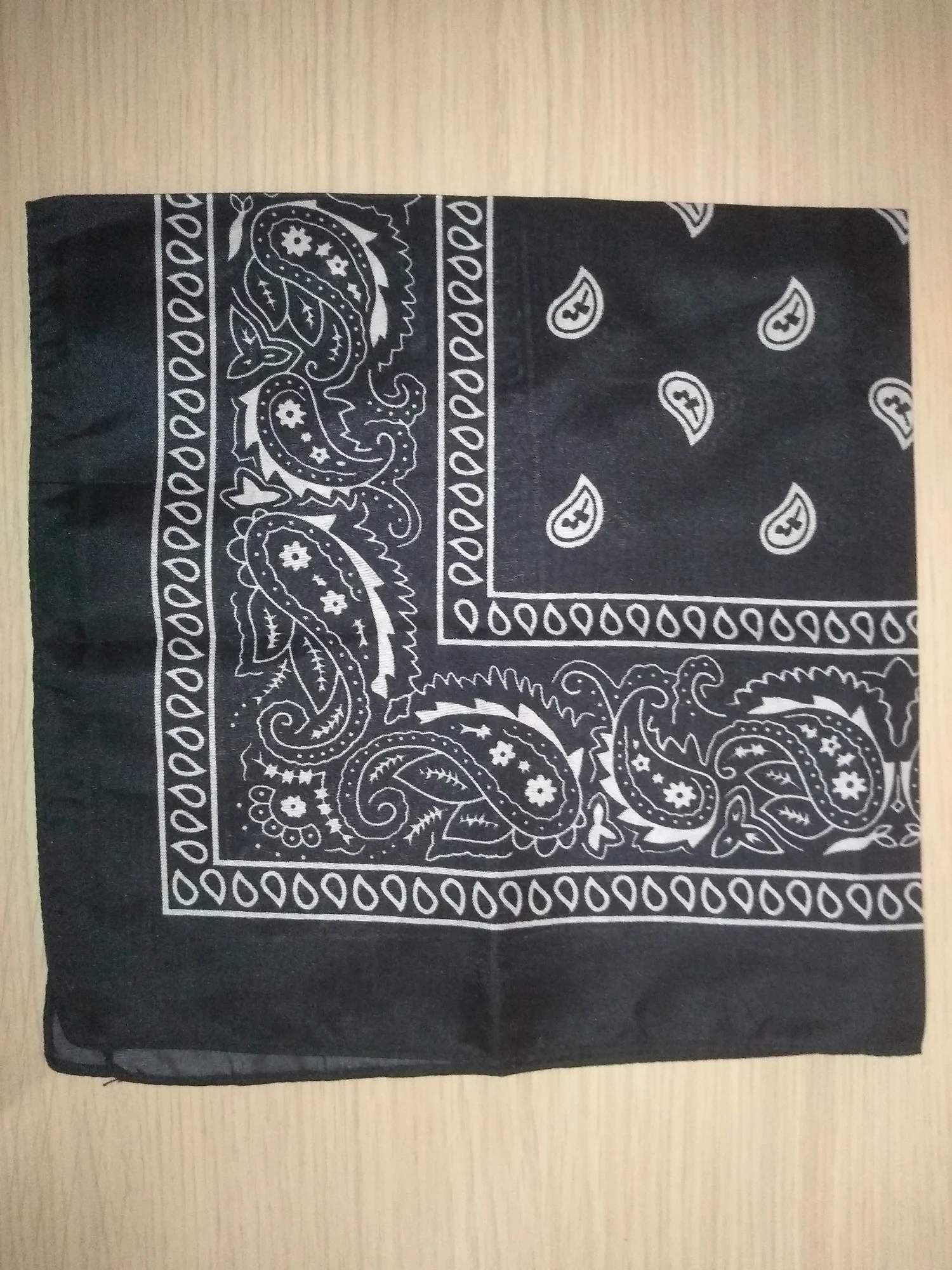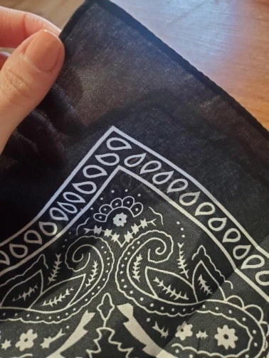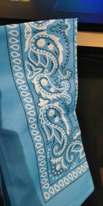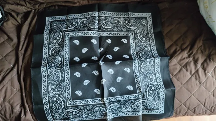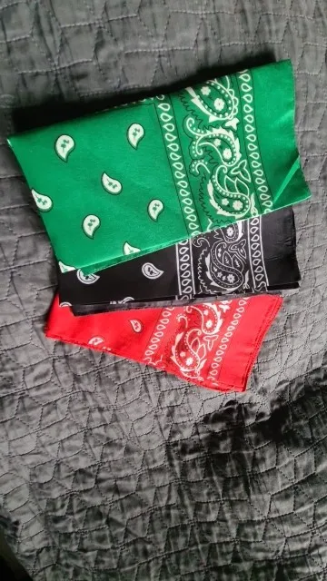 Я заказал белую бандану и черную бандану, и оба соответствуют описанию. Однако материал тоньше, чем у банданов, купленных в торговле. Я рекомендую несмотря ни на что