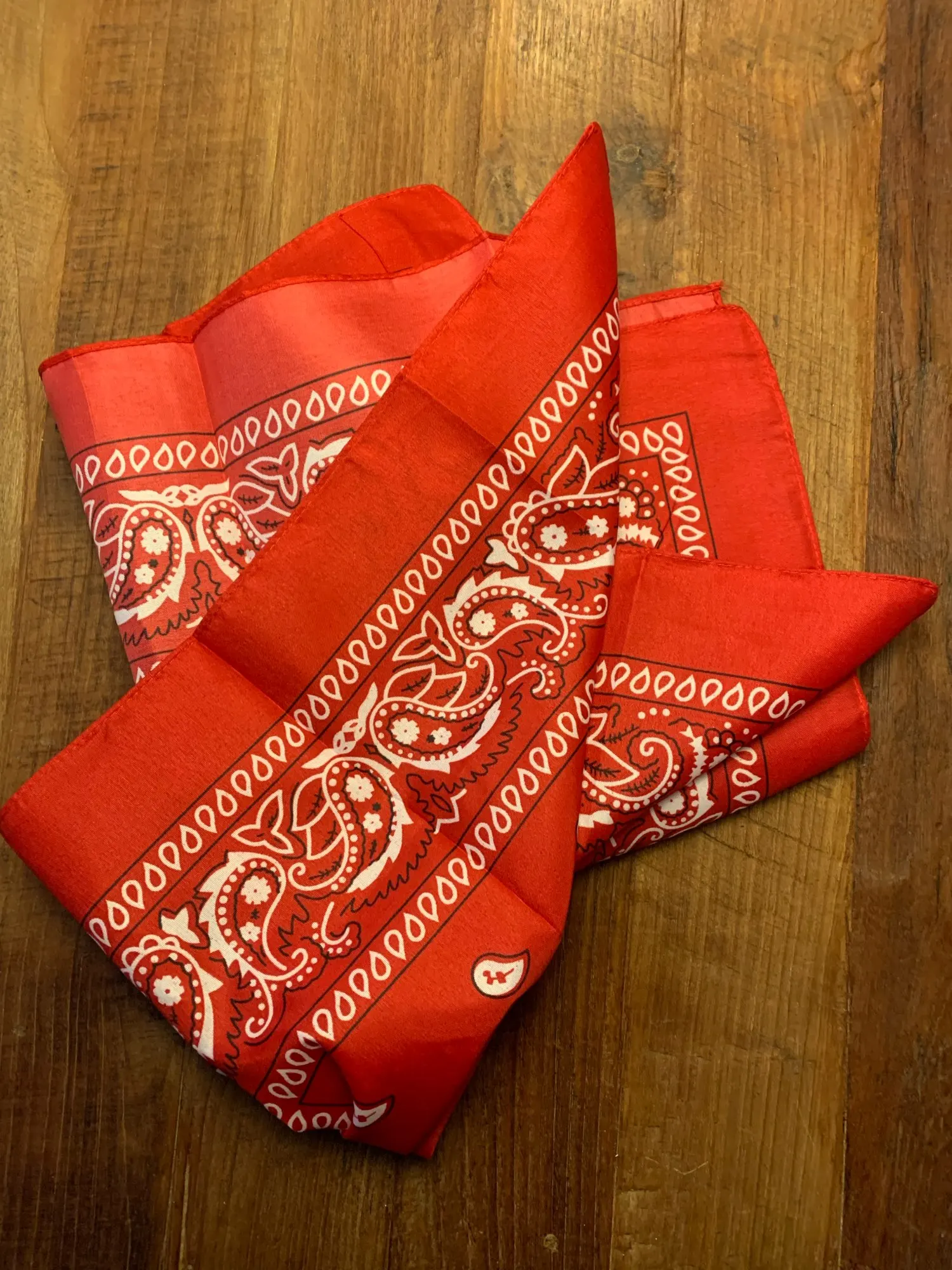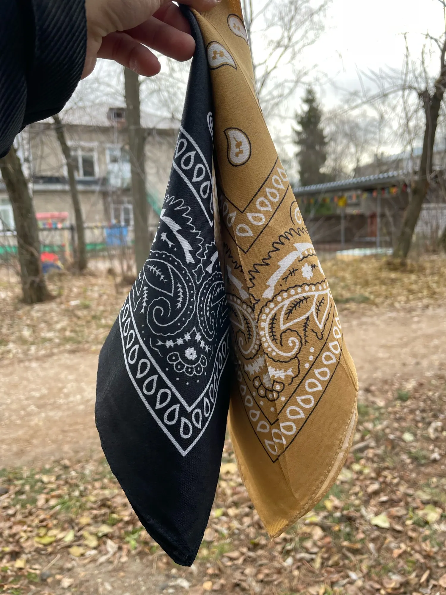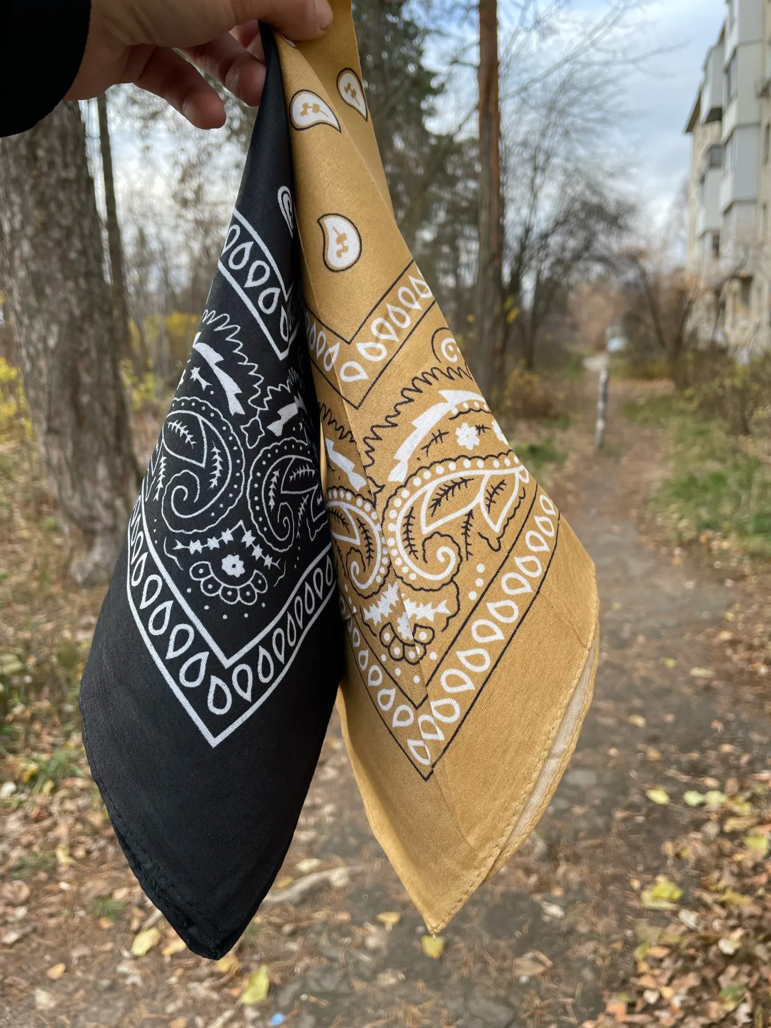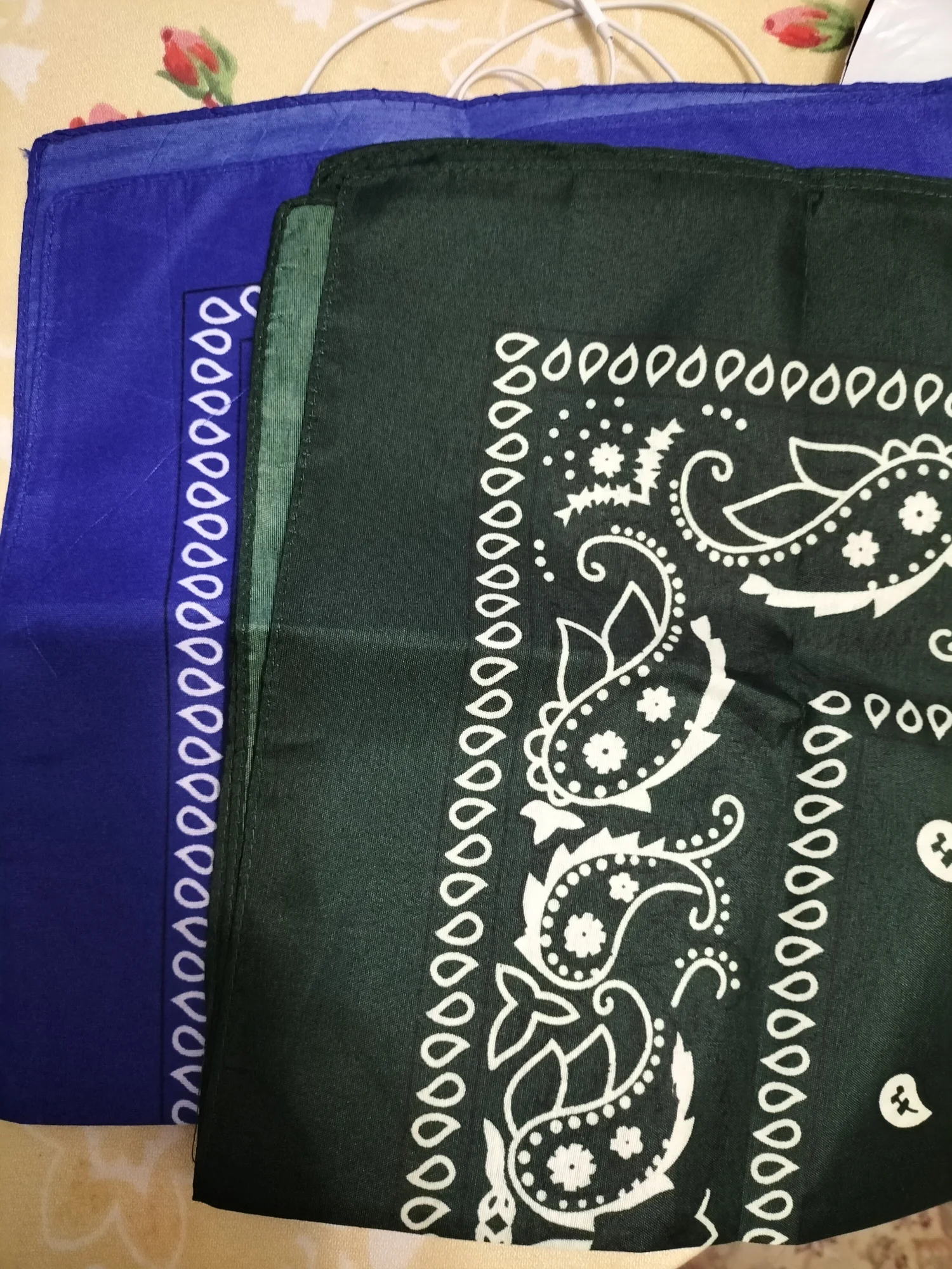 Я заказал белую бандану и черную бандану, и оба соответствуют описанию. Однако материал тоньше, чем у банданов, купленных в торговле. Я рекомендую несмотря ни на что