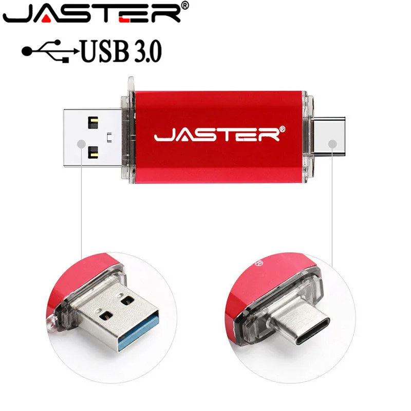 USB-флеш-накопитель JASTER, USB-накопитель 2 в 1, USB Type-C и USB-...