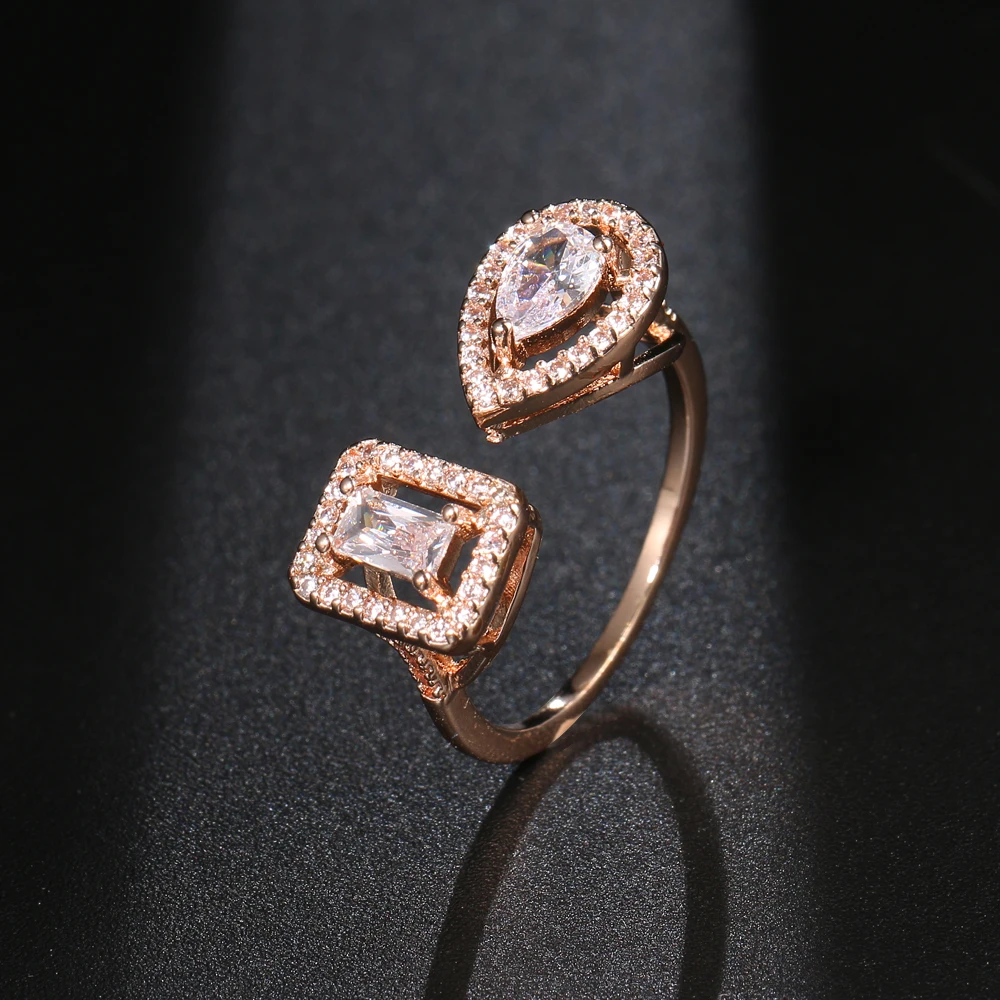 Модные регулируемые кольца из фианита с каплями воды WR448
