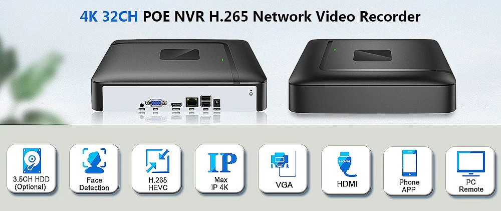 32CH NVR ResolutionH.265 9CH 16CH 32CH 4K NVR