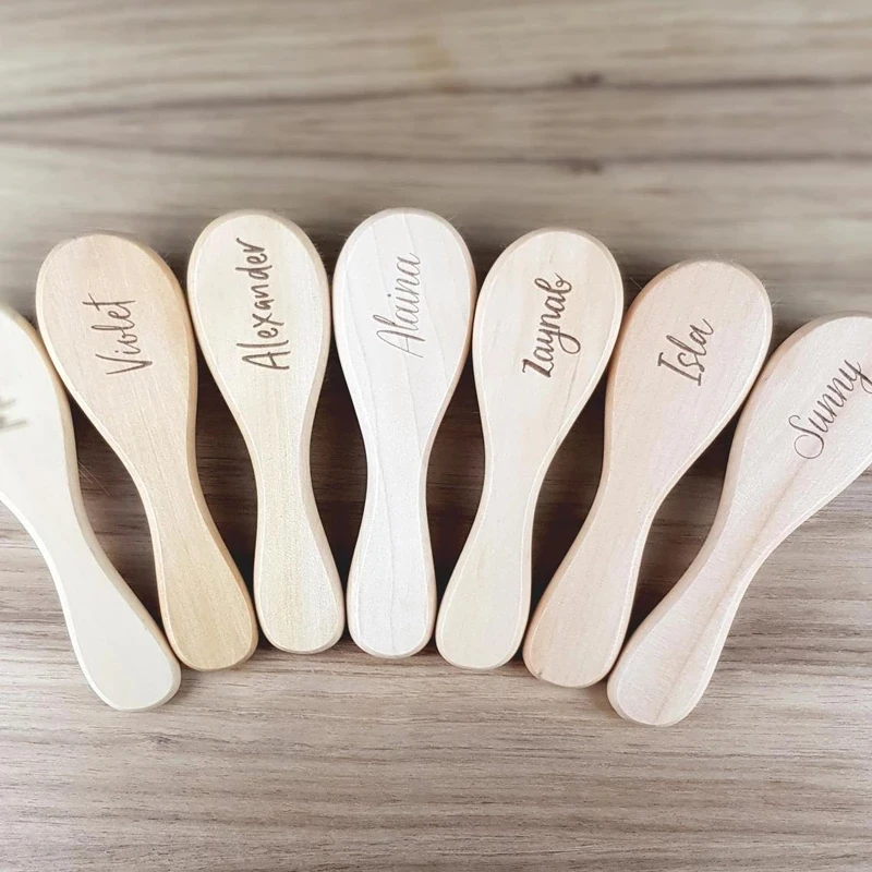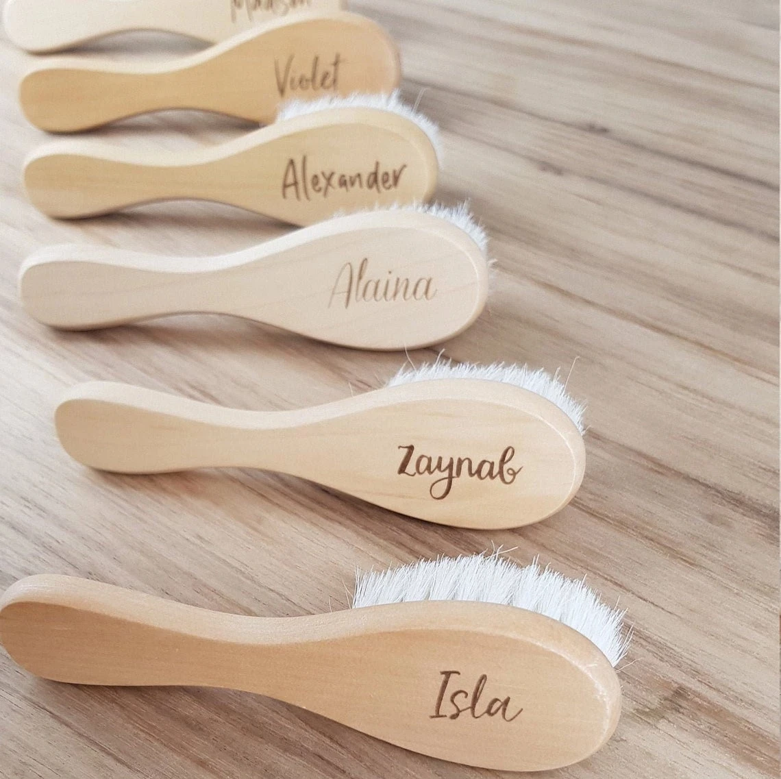 Пользовательские кисти для новорожденных, мягкая деревянная кисть, резные подарки для малышей, детский душ или зарегистрированные подарки