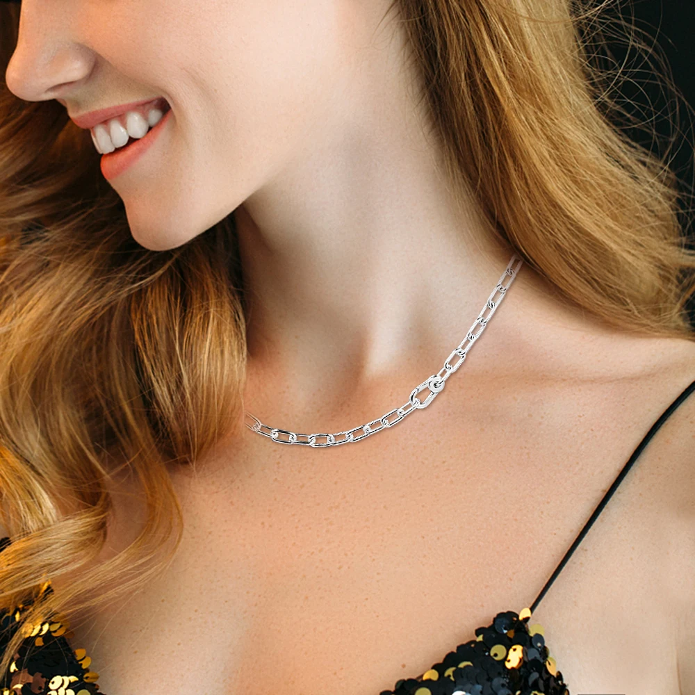 Женское ожерелье из серебра 100% пробы с цепочкой и звеньями