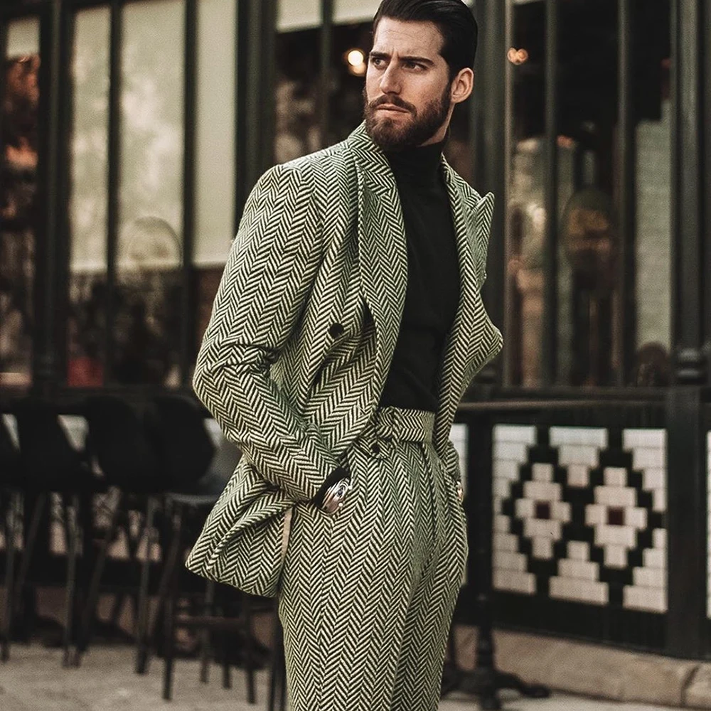 Мужские костюмы в елочку серого цвета, официальная свадебная одежда для жениха, двубортный пиджак + брюки, 2 предмета, облегающие смокинги, блейзер для мужчин