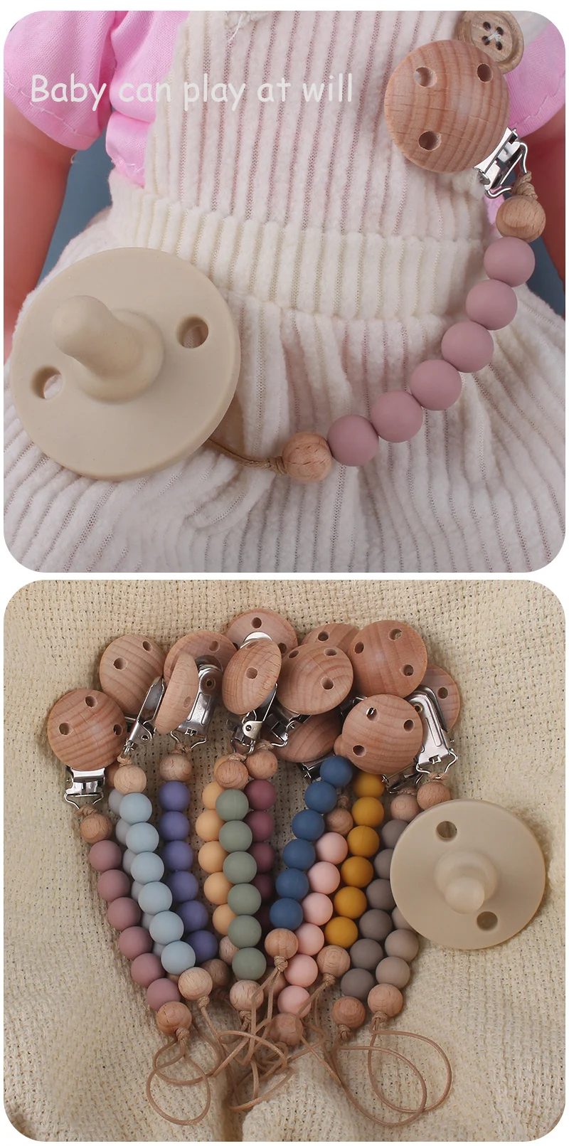 12 мм, силиконовые зажимы для соски, цепочка с тремя отверстиями, Буковый держатель, зажимы для соски для младенцев