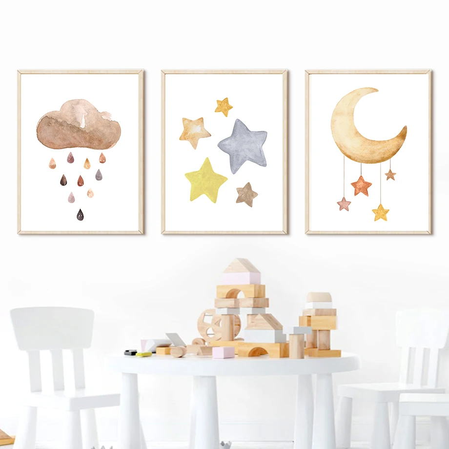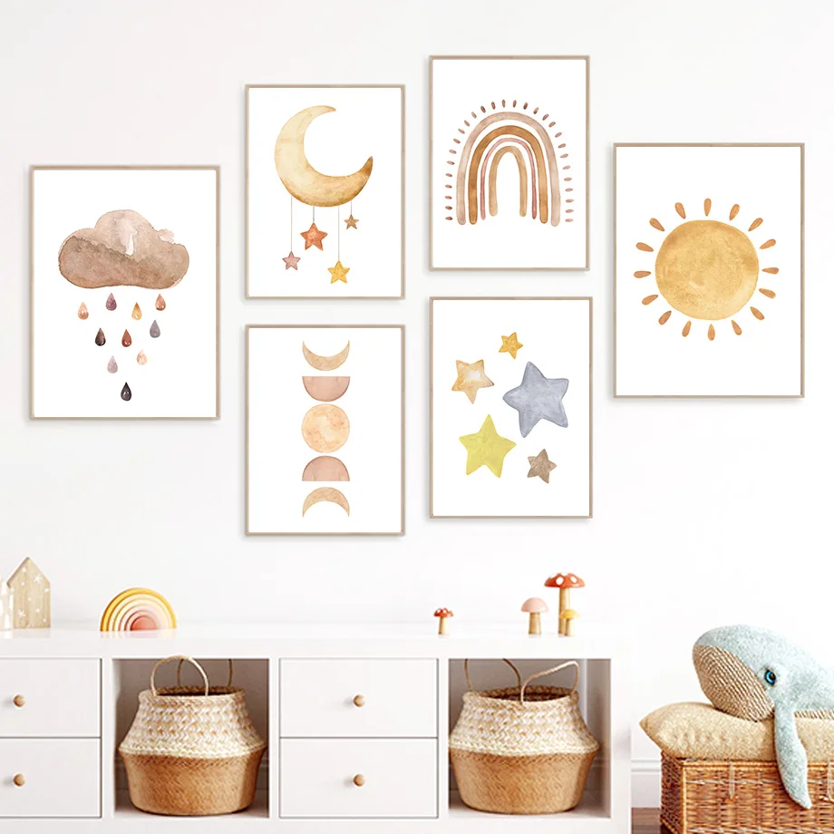 Мультфильм Солнце Луна Радуга облако стены Искусство Холст Живопись скандинавские плакаты и принты детские настенные картины для детской комнаты декорМатериал: экологически чистый хлопокХарактеристика: солнцезащитный, водонепроницаемый, никогда не выцветает