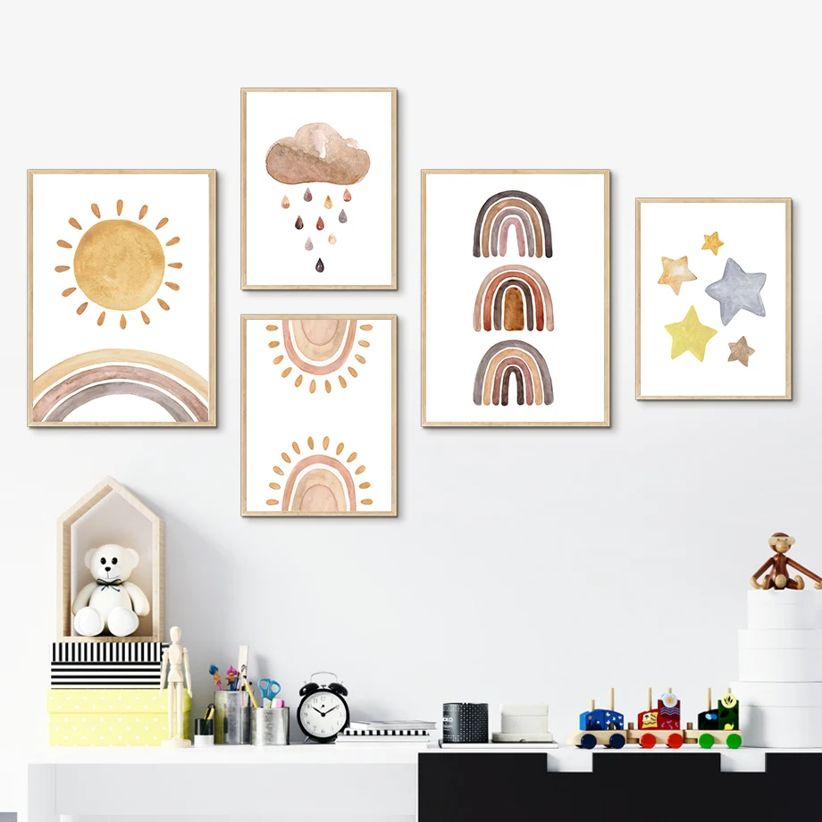 Мультфильм Солнце Луна Радуга облако настенная живопись холст скандинавские постеры и принты настенные картины для детской комнаты декор комнаты