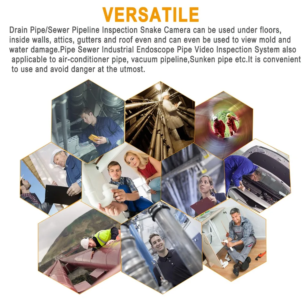 Канализационные трубы/канализационные трубопроводы инспекционной змеиной камеры можно использовать под полом, внутри стен, чердаков, желобов и крыши даже и может быть использован для просмотра плесени и повреждения воды. Труба канализационная промышленная эндоскопическая труба Система Видео Инспекции также применима к трубе кондиционера, вакуумному трубопроводу, затонувшей трубе и т. д. Удобно использовать и в максимальной степени избегать опасности.