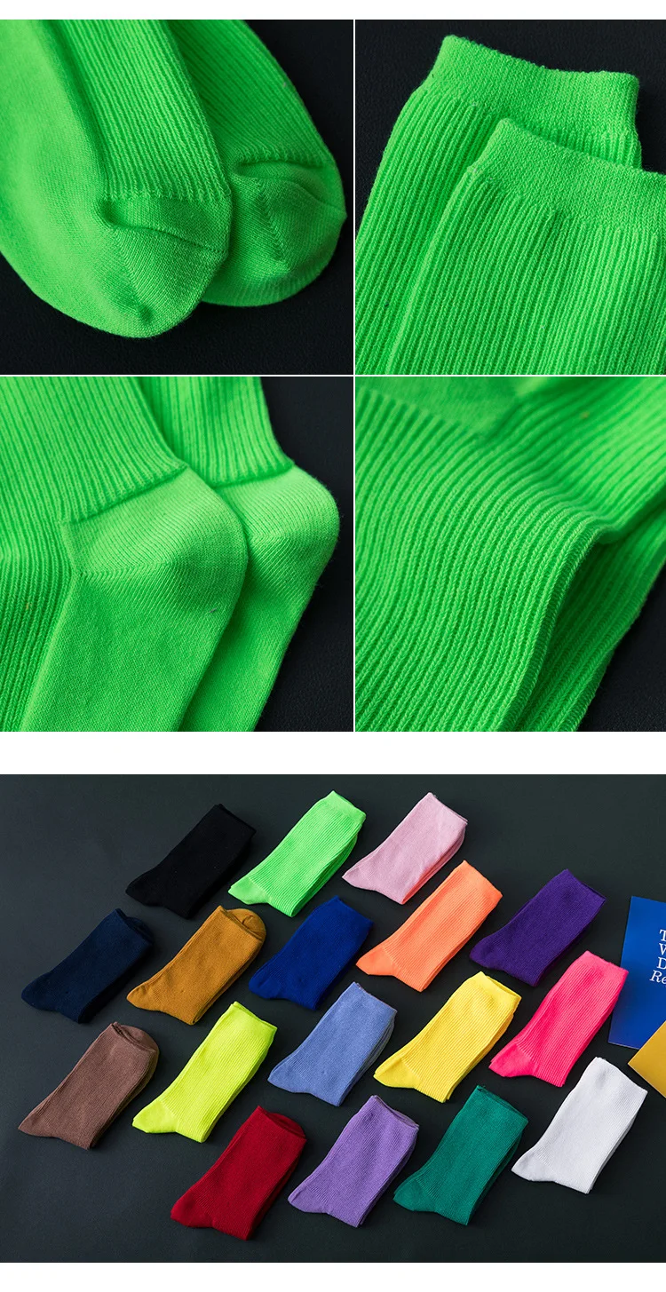 Anewmorn InsПопулярные носки для женщин; Модные носки унисекс из чистого хлопка для пары; Повседневные Носки ярких цветов; Неоновые, розовые, флуоресцентные, зеленые носки