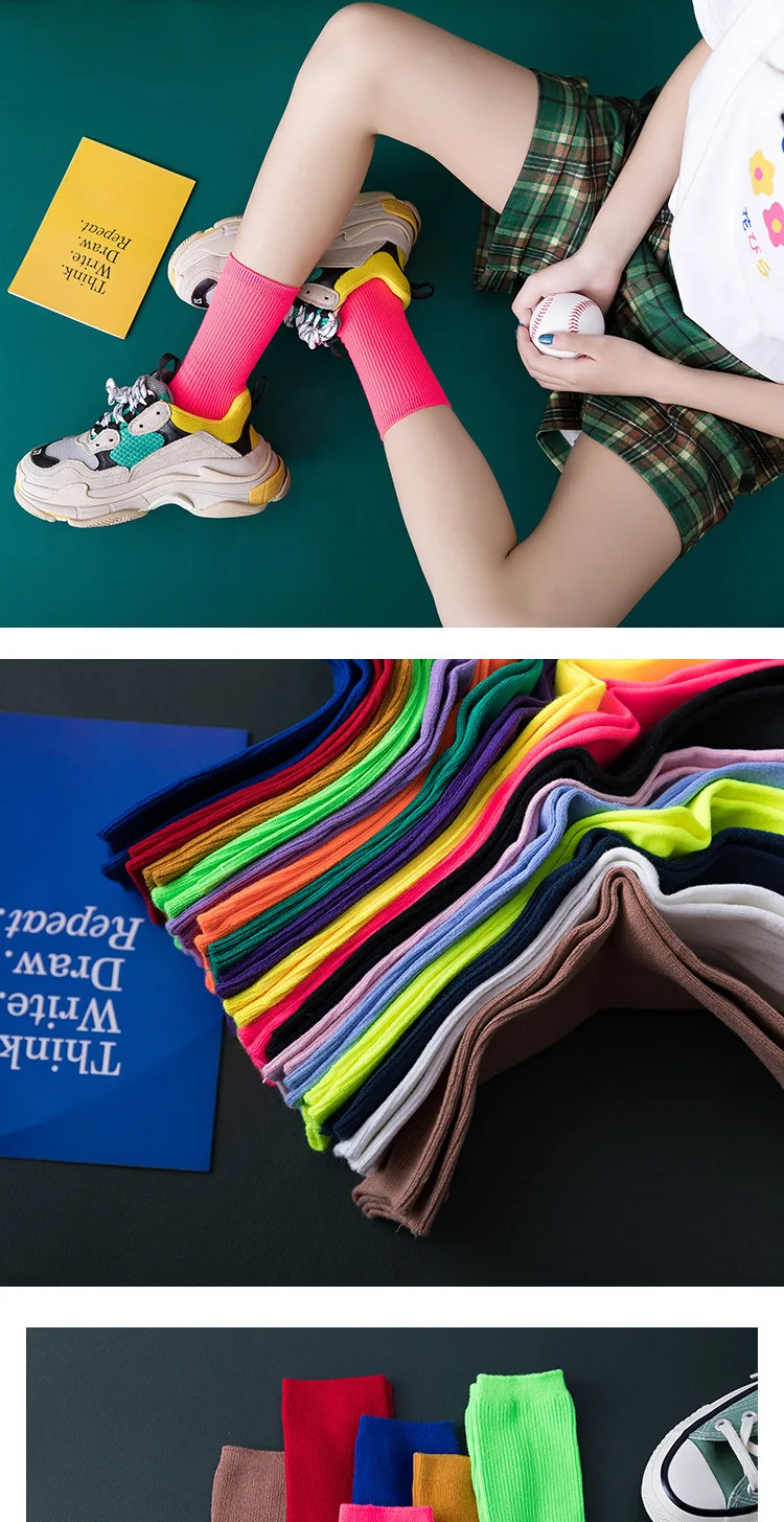 Носки женские в стиле Харадзюку, флуоресцентные, яркие неоновые, в ...