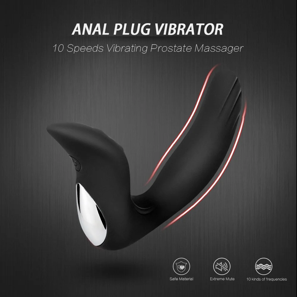 Мужской Вибратор для массажа простаты, Анальная пробка, Силиконовый водонепроницаемый стимулятор простаты, кольцо для задержки эякуляции