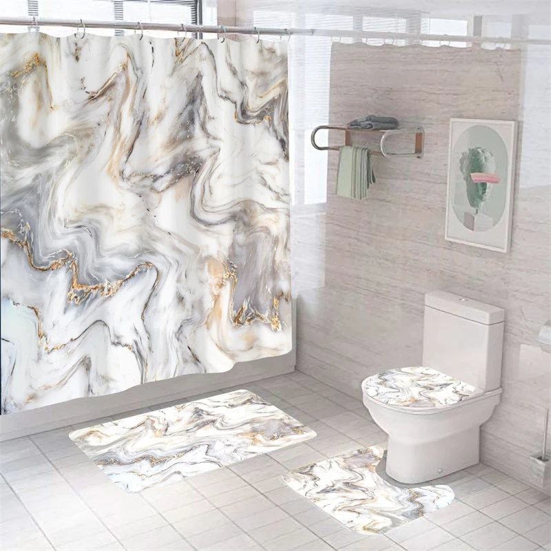 Роскошная 3D мраморная занавеска для душа из полиэстера, водонепроницаемая занавеска для душа, Современная стильная печать, чехол для ванной и туалета, коврик