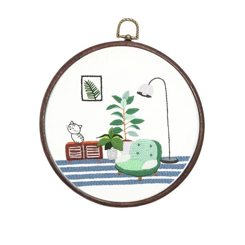 вышивка крестом пяльца для вышивания Набор для вышивания сделай сам для начинающих, Набор для вышивки крестиком с изображением милого кота и цветов, набор для шитья, подарочное ремесло, Прямая поставка
