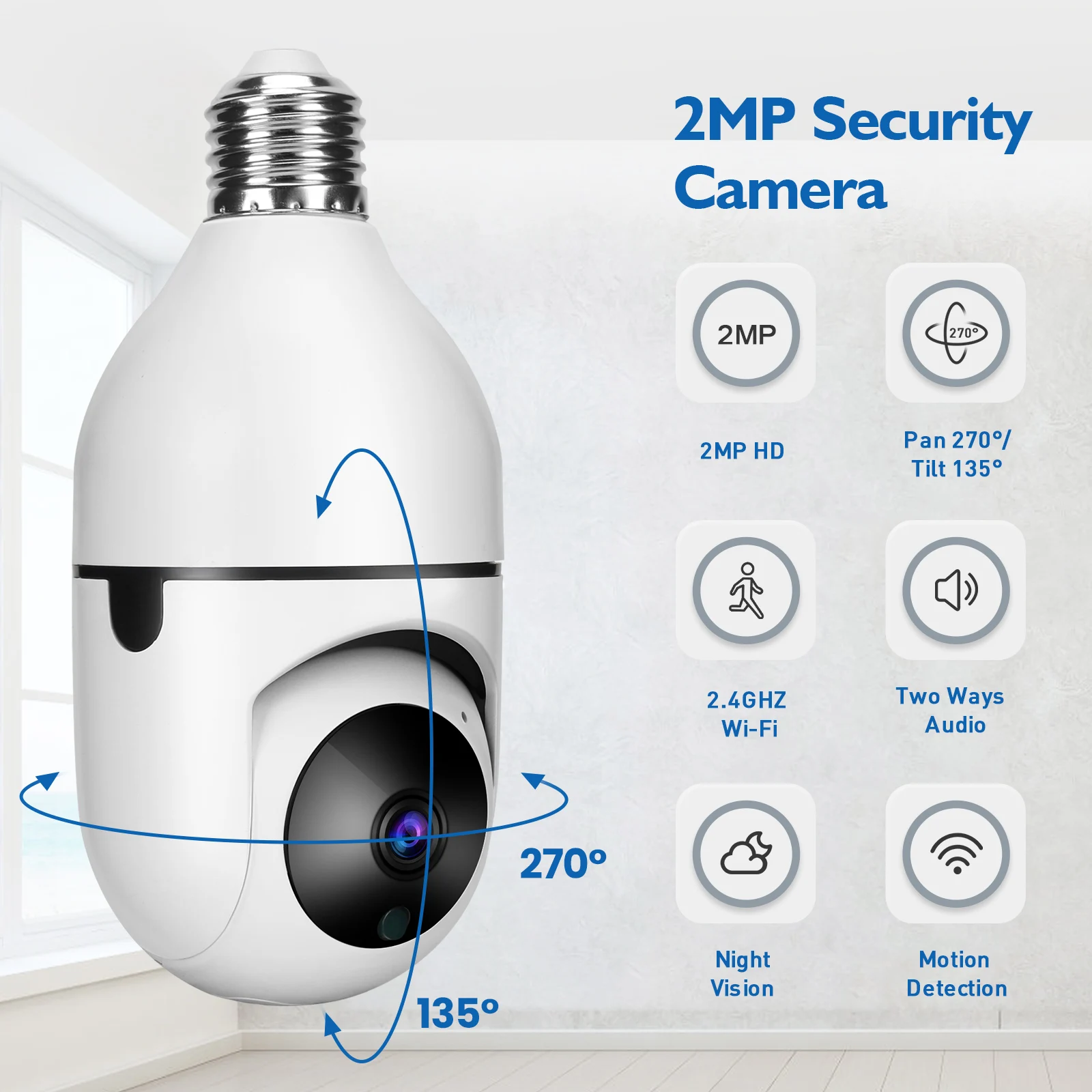 6. Способ установки: держатель лампы является универсальным держателем лампы E27, который может быть установлен и использован при подключении основного интерфейса E27, настоящей беспроводной камеры наблюдения.