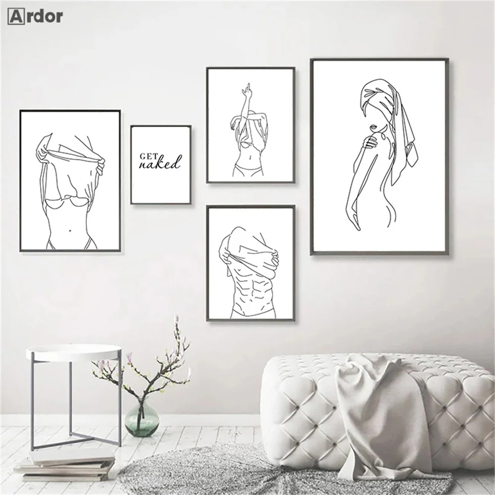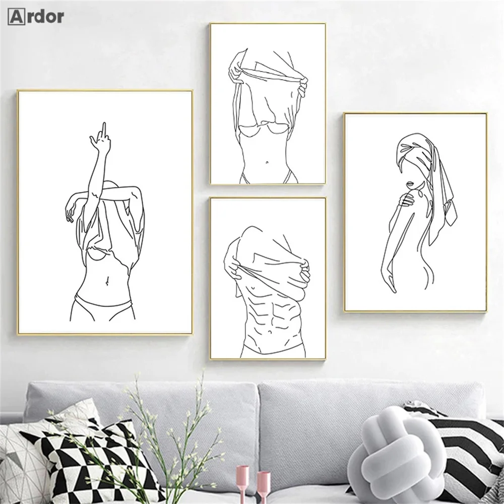 Абстрактный Женский рисунок лески на холсте, плакат, сексуальная женщина, живопись на теле, минималистичный принт, настенные картины, декор для гостиной