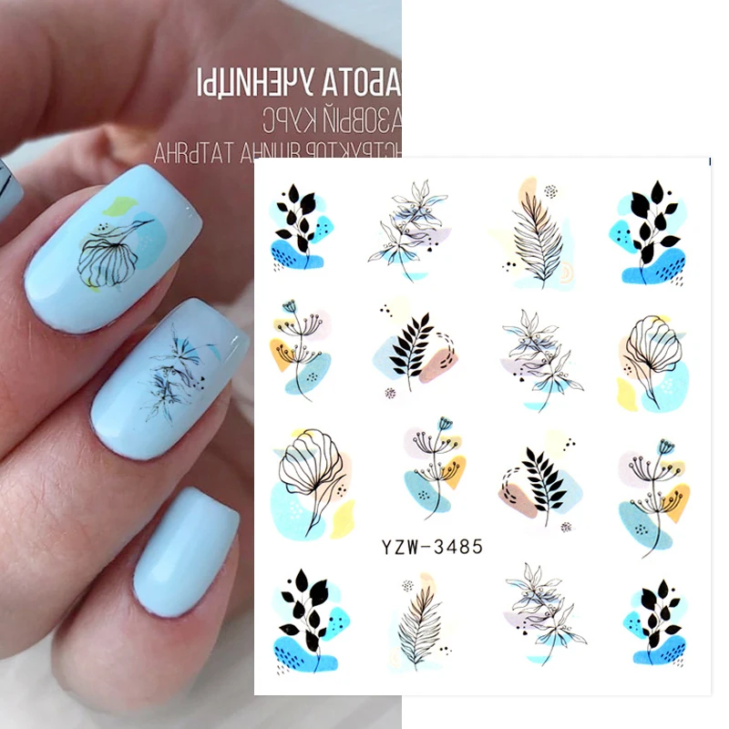 Водная наклейка для ногтей и наклейка, цветок, лист, дерево, зелена...