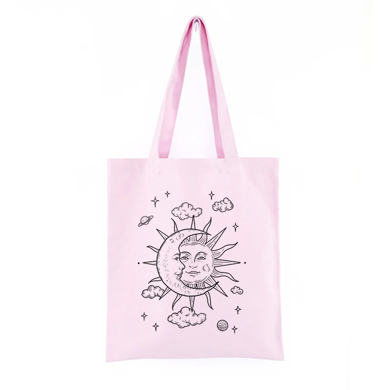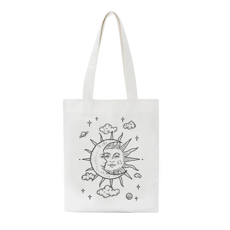 Холщовая Сумка Moon sun с принтом, повседневная вместительная сумочка-тоут в стиле хип-хоп, винтажная женская сумка на плечо, школьные ранцы для подростков