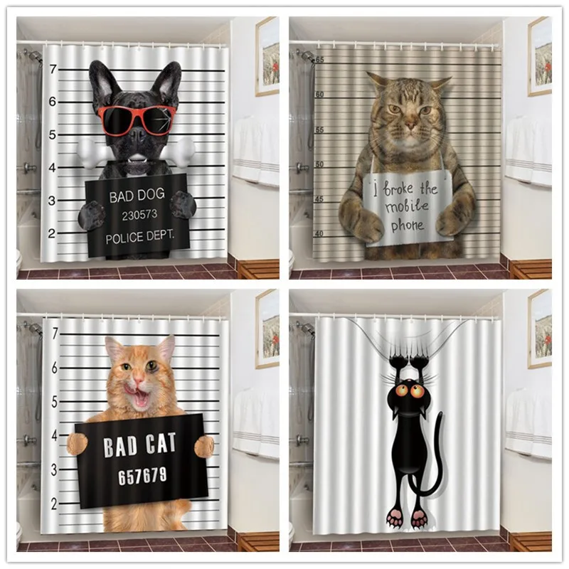 Занавеска для душа черно-белая с аниме-рисунком