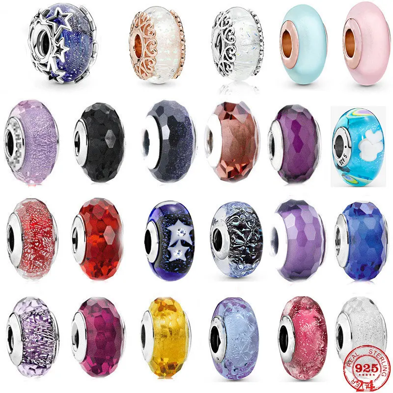 Лидер продаж, ожерелье из серебра 925 пробы с розовыми гранями и бусинами из муранского стекла, подходит для оригинального браслета Пандоры, подвеска, ожерелье, ювелирные изделия