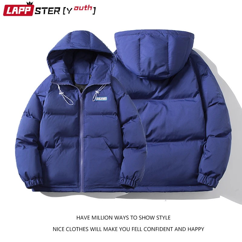 LAPPSTER-молодежная Мужская винтажная однотонная зимняя пуховая куртка 2022 Мужская Толстая хлопковая пузырьковая куртка с капюшоном мужская цветная Корейская парка пальто