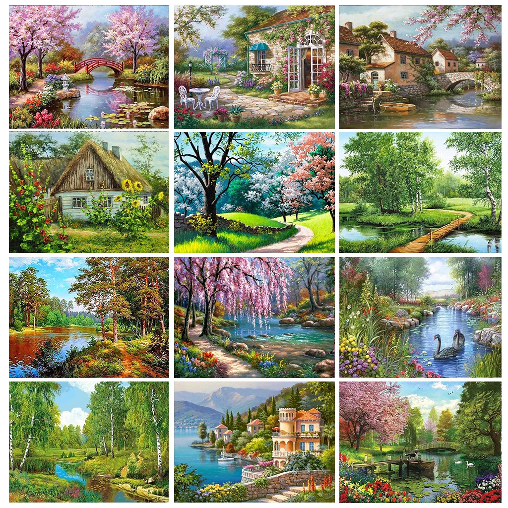 Полноформатная алмазная живопись, пейзаж, весна, 5D, алмазная вышивка сделай сам, мозаика, вышивка крестиком, зимнее украшение для дома, подарок