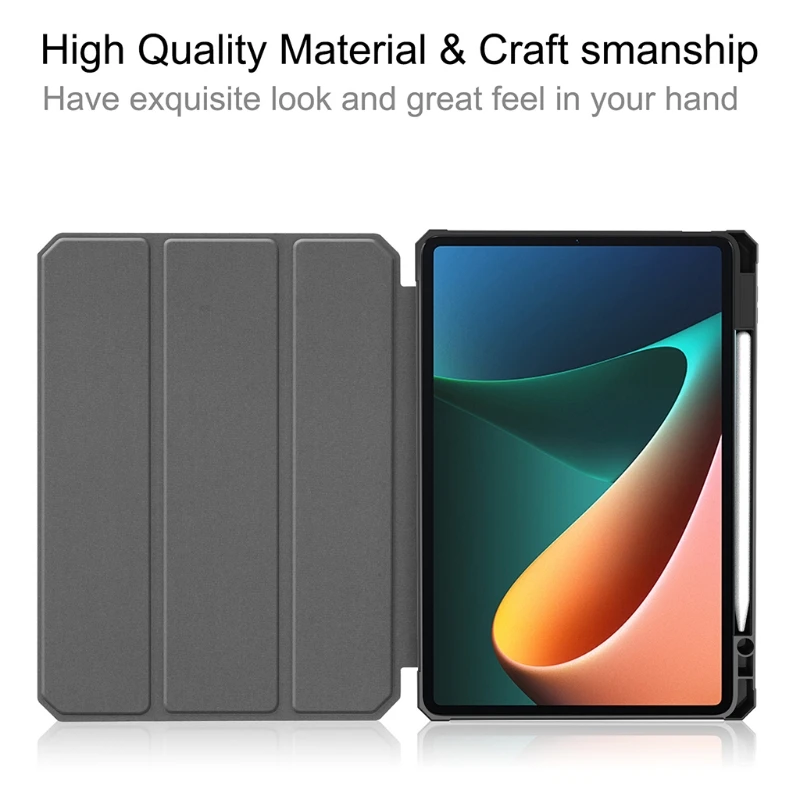 Умный чехол для планшета с кожаной подставкой, складная задняя крышка из ТПУ, держатель карандаша с функцией автоматического пробуждения/сна для Xiaomi Pad 5 5 ProOOTDTYОсобенности на 100% абсолютно новый и высокого качестваСовместимость: противоударный флип-чехол для Xiaomi Pad 5 / Xiaomi Pad 5 Pro с карандашом.Технология подушки безопасности: Интегрированная защита, подушка безопасности покрывает внешние края вашего MI Pad, защищая его от случайных падений и ударов.Улучшенная защита камеры: 3 мм приподнятые края, чтобы предотвратить легко царапать объектив камеры.Чехол с точным вырезом: Этот точный защитный чехол для телефона чехол позволяет легко управлять кнопками, камерами и портами вашего планшета.Стабильная Тройная поддержка: две функции поддержки дизайна, удобные для вашей работы и жизни.Характеристики: Материал: ТПУ + ПУРазмер: прибл. 200x150x1 2 мм/7.87x5.91x0.47inЦвет: черный, синий, розовыйПосылка включает в себя: Материал: ТПУРазмер: прибл. 26x18x1.2 см/10.24x7.09x0.47inЦвет: черный, темно-синий, темно-зеленый, серый, Небесно-Голубой (по желанию)Примечание: возможны отклонения в 0-1 см вследствие измерений вручную. Пожалуйста, убедитесь, что вы не возражаете, прежде чем сделать ставку.Из-за разницы между различными мониторами изображение может не отражать фактический цвет изделия. Спасибо!