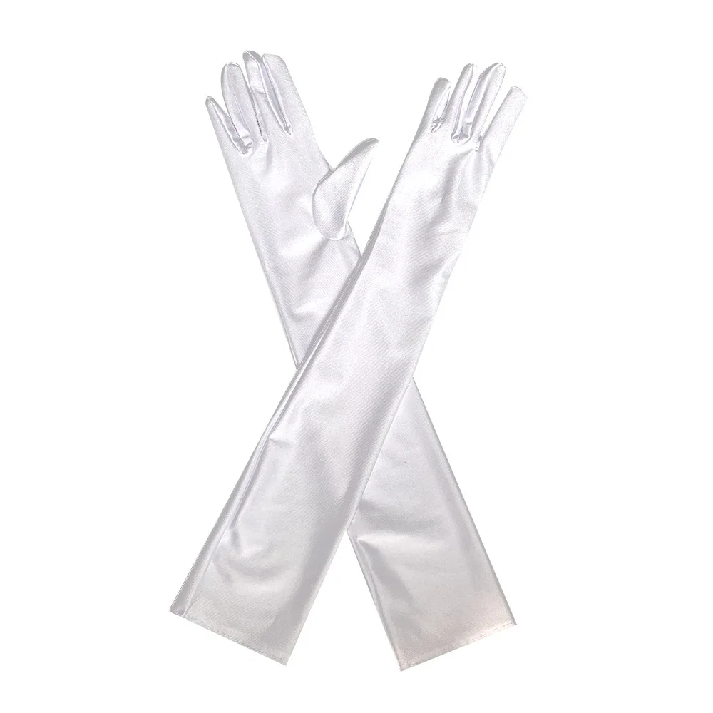 Классические взрослые черные белые красные серые кожаные перчатки для оперылоктязапястья Стрейчевые атласные длинные перчатки с пальцами женские перчатки-Хлопушки подходящий костюм